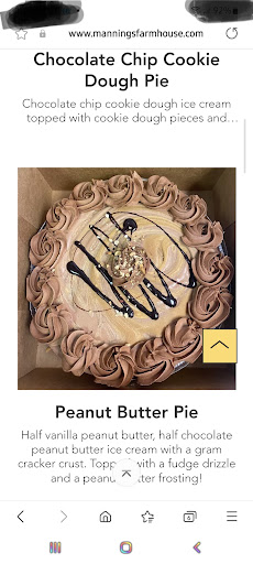 Read moreFound the only website we could. Kingston location is only one with an actual website. We looked at the different pies and cakes and decided which one. We all love peanut butter so it was easy. When we cut into it, it is clearly only vanilla and chocolate ice cream. I don't know why this is called a peanut butter pie. The only peanut butter is a very small amount swirled on top the pie. It clearly states on the website vanilla peanut butter and chocolate peanut butter ice creams. That is what we were expecting. The 2 to be swirled ice creams. Very disappointed. For peanut butter it should be very tasty. Again, when eating it, you can barely taste any peanut butter. Won't get another...