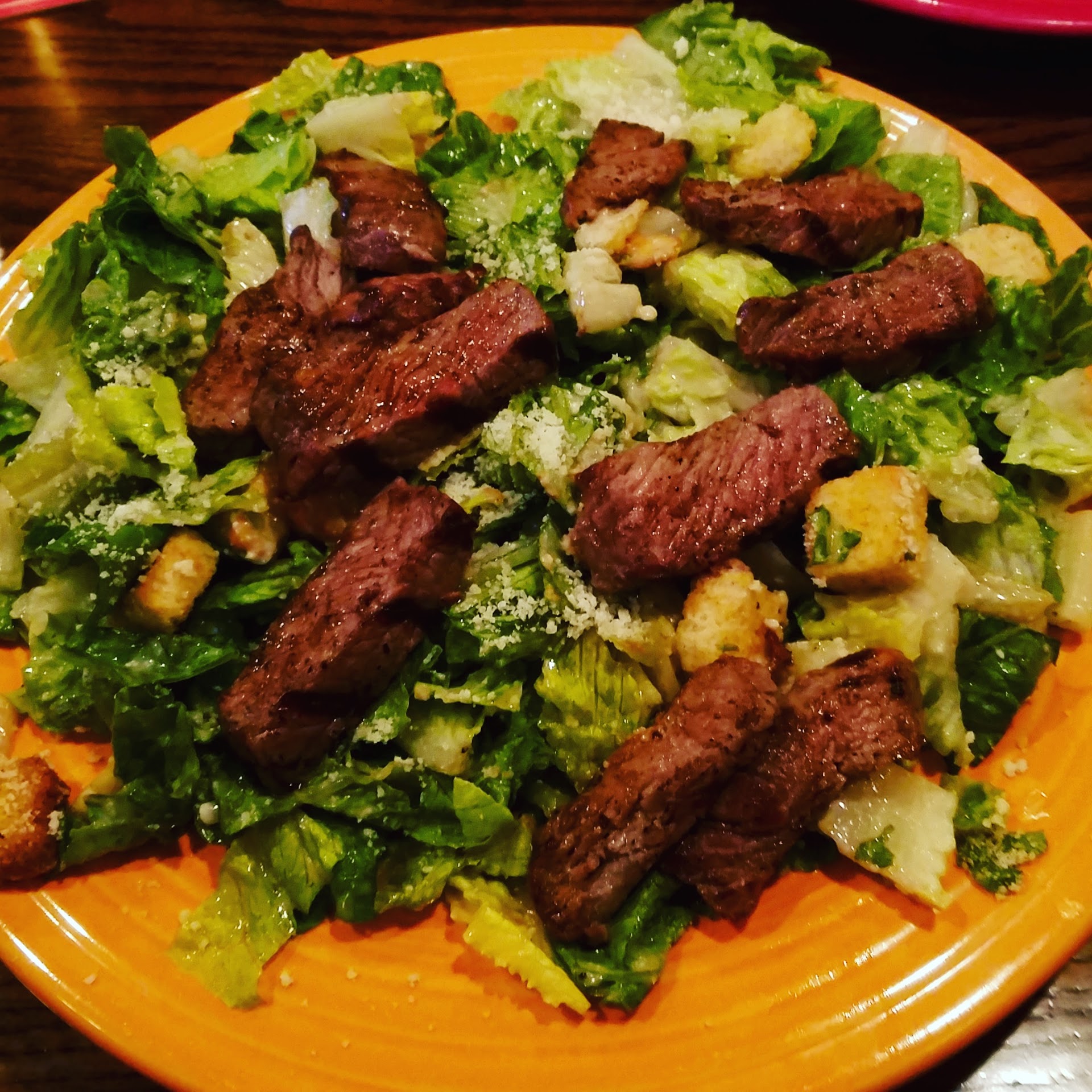 My steak tasted like it came out of a freezer. My girlfriend ordered the vegetable pasta Alfredo - it was HUGE and OBVIOUSLY FROZEN. It was clearly something like Birdseye Frozen Steamer Microwave bags. YUCK.