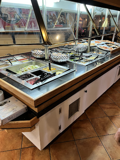 Gave this place another try dining in this time. High chair given was wobbly and had some type of yellow cake icing when provided. Pizza was old and dry. Salad bar was good. Waitress inattentive....