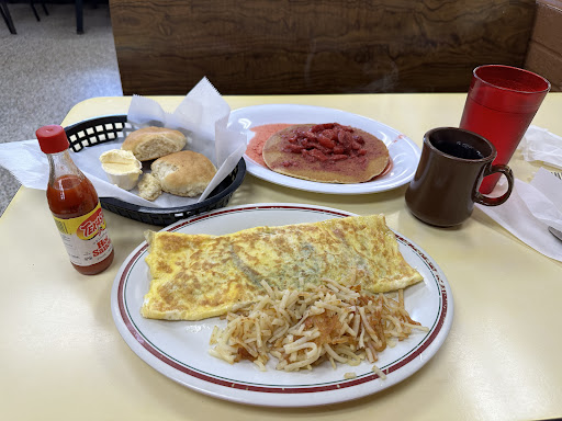 My husband is an amputee in a wheelchair so we always call ahead to see if a place is wheelchair accessible. We were told this place was so we headed that way for breakfast. When we arrived, the handicapped parking was way around on the side by a road with heavy dump truck traffic. There was no ramp area that was accessible so he rode down the sidewalk a fair piece before getting to the door that said Closed on Sunday for Jesus. We went inside and there were no handicap accessible tables, just booths so my husband has to sit at the end half blocking the walkway through the restaurant. The waitress brought us two coffees and menus. We both found something we wanted to eat but the omelettes came with toast and grits. My dental work doesn't do well with grits and dry toast crumbs so I asked if I could skip the grits and toast for a waffle or even half a waffle instead. Instead of saying yes, or that would be a slight upcharge, the waitress looked like I had asked her for the Hope Diamond. "NO! NO SUBSTITUTIONS" We said we needed another look at the menu. None of the pancake or waffle items came with eggs, so I decided not to order anything. My sweet, patient husband flagged down a different waitress and asked to speak with the manager. I told him no, let's just get back on the road and look for better service elsewhere. We paid for our coffees and left. Now, I'm a fair to middling cook and know it is more difficult and more expensive to make toast and grits than it is to lob a ladle of waffle batter into the waffle maker. And I also am Christian enough to know that that any restaurant closed on Sunday for our Lord Jesus should know to follow Hebrews 13:2 "Do not forget to show hospitality to strangers, for by so doing some people have shown hospitality to angels without knowing it." Heaven forbid Jesus would want to substitute a waffle for the...