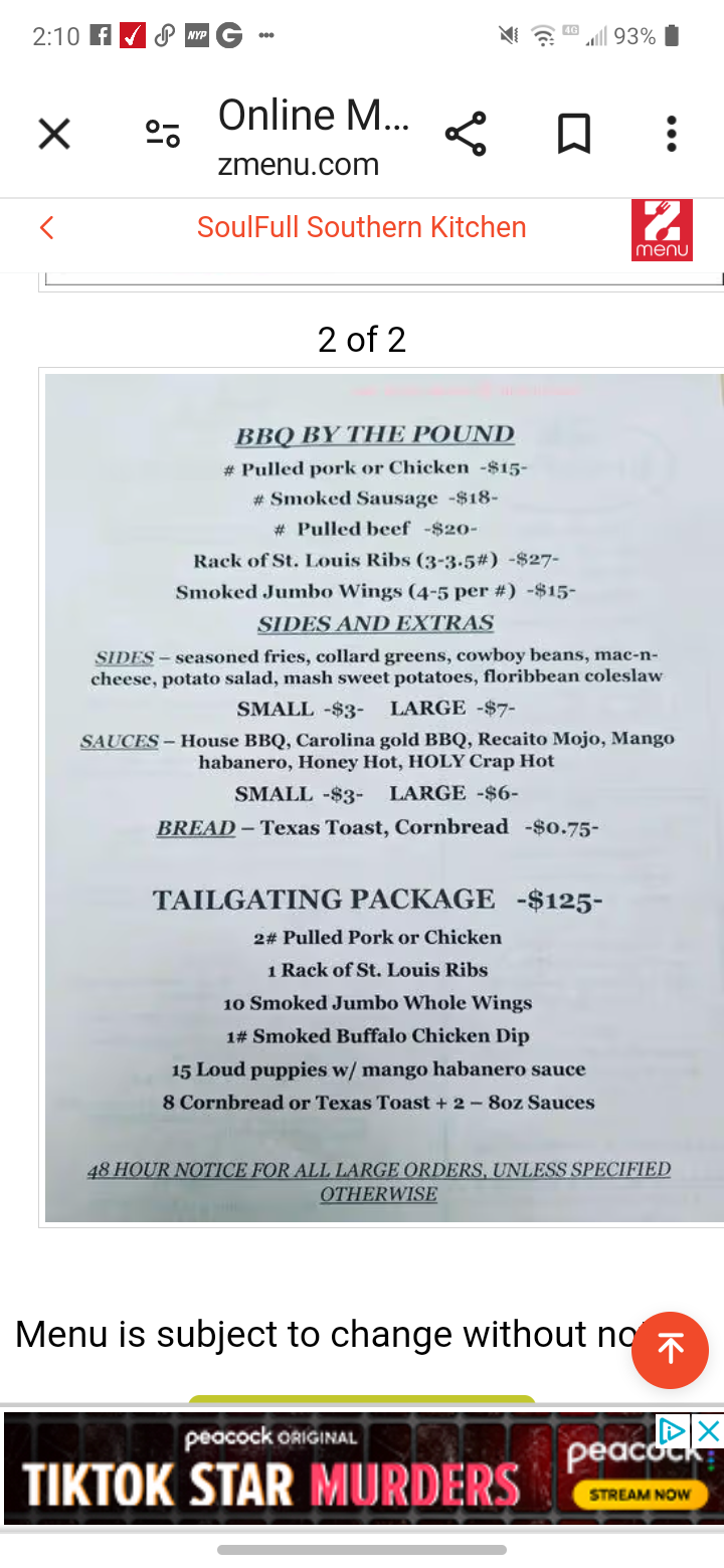 Ā Ā Ā Read moreI have now added SoulFull Southern Kitchen to my favorite places to go. I will not be eating at any other Bar-B-Que resturant. I am from Memphis where we are known for our Bar-B-Que and this is by far makes me think of home. I picked up a menu for myself and neighbor and I need to go get more so that I give it to all of my neighbors. If you are in the area are not that far they are worth the drive. The service is just a great as the food and I also loved how clean and well kept the was as well. There is nothing bad that I can say. If you have a vaild military ID they offer 10 percent off. I have to say thank you to them for their service to our country and honoring...