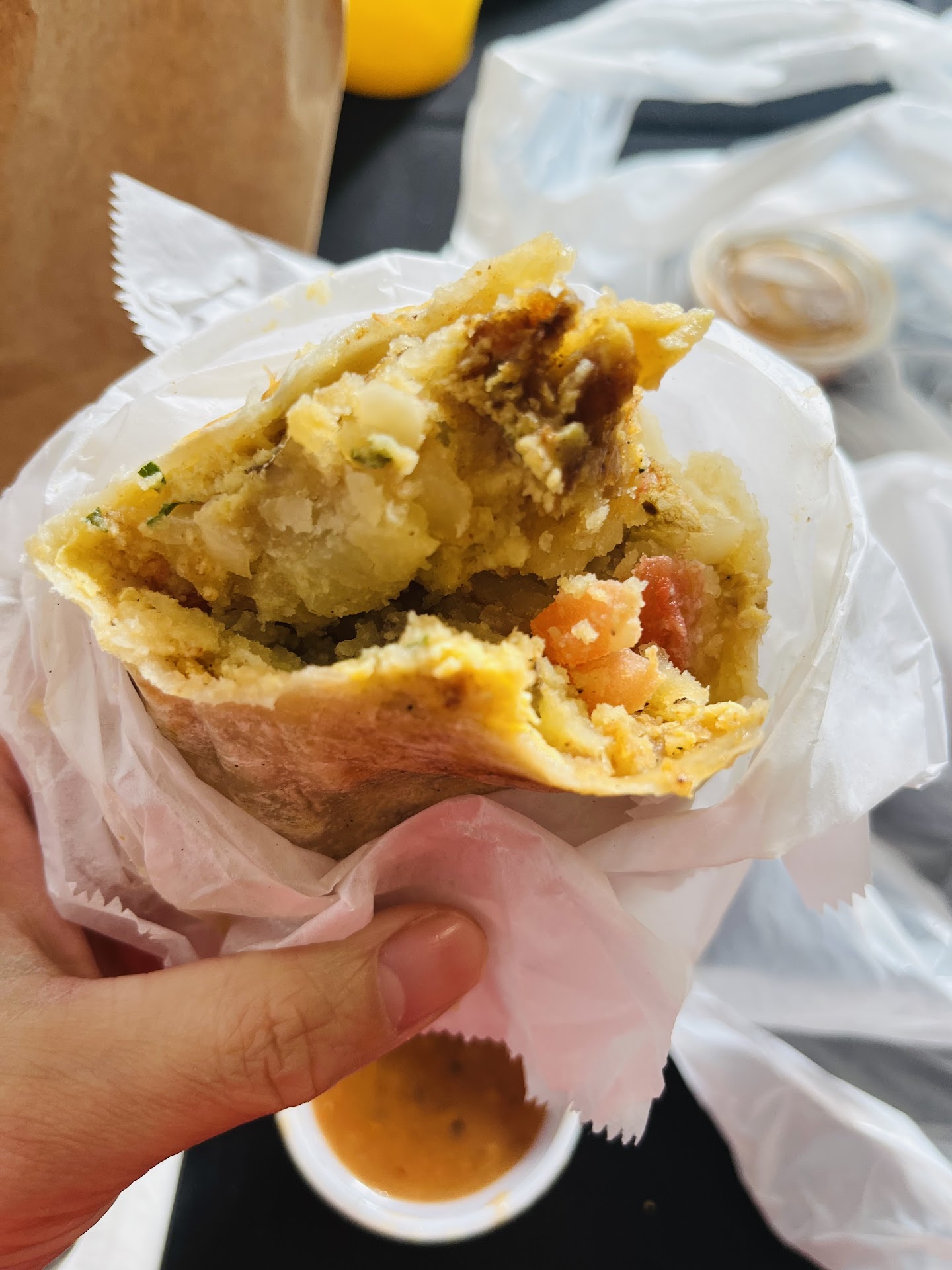 The food is just…okay. I got the breakfast burrito and it was mostly potatoes with a small smattering of eggs and meat bits.