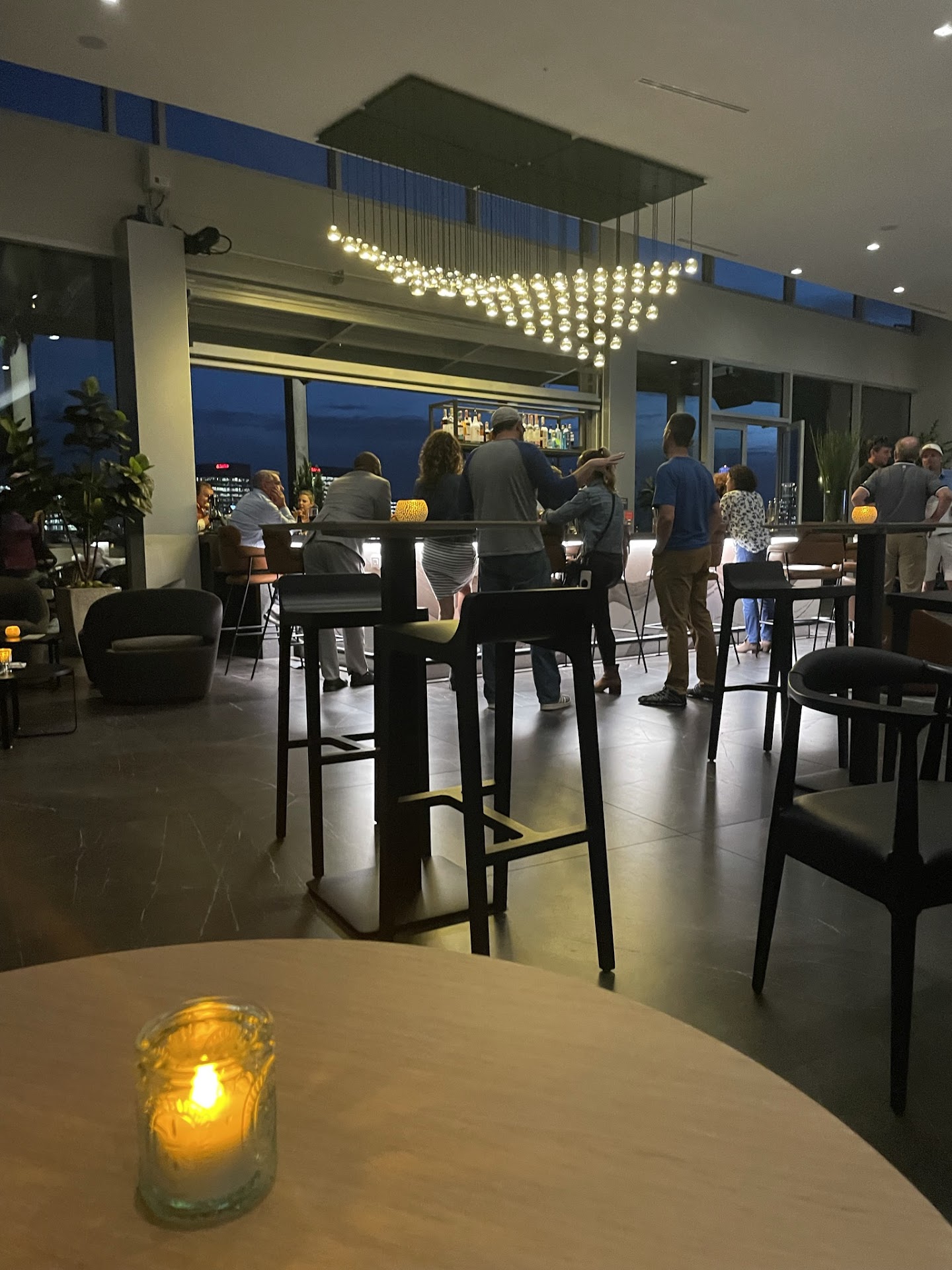 I was there on Wednesday, June 26, 2024 for the rooftop experience – on a date. We arrived and was told to sit anywhere. We choose an outside corner table for the rooftop view. We were greeted by a server within a reasonable time of sitting down. We ordered a cocktail each along with a glass of ice water with lemon. Our server comes back with two ice waters and then asked us for a credit card. We presented a credit card but thought it was odd and why would she ask for a credit card from us sitting at a table and ordering (waters and a cocktails) with menus in front of us. I watched our server then go behind the bar to make our drinks and comes back with drinks and the credit card we presented. We then place our order to split a wedge salad- no bacon and BBQ chicken flatbread. Our food is brought to us within a reasonable time from ordering by a kitchen food/table delivery guy. I ask this gentleman for red pepper flakes for the flatbread. The gentleman comes back and stated we don’t have any. We begin our meal, finish it, and wait for our server to come back and greet us to find out if we needed anything or ask how the food was. That never happened! We wait longer…. I finally get up because our server seems to be multitasking and completely forgot us at the corner table. I asked for a to-go box and our check. Our server takes another 5-6 minutes to come back to our table with two paper plates and our check with a service fee of 22%. I asked what the paper plates are for, and she stated - we don’t have to-go boxes. WOW!!!