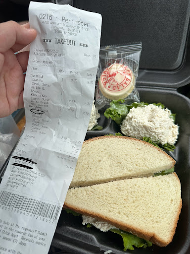Read moreI just went in here for an online order, I found the space where they have them and go to grab my order, just like any other place with online shelves. I was approached by an older lady who unkindly said “ma’am, ma’am you need to back out of here” and I do, and a guy (nicer) says he has to grab it for me and asks my name, and I said it, and she goes “you can’t just walk in here, you don’t do that” so I said they should have a sign that says that then because it’s customary at other places with online (jimmy johns, Einstein’s, etc) that you grab it yourself. She says, again, pretty rudely, “we do have one ma’am” and puts her hand on a sheet of paper (that’s folded in on itself on the sides because it’s not laminated so she literally has to widen her fingers to show the words on it). I just said they should get a bigger one and left, I found that incredibly rude for something that was a simple mistake, as this is also the only chicken salad chick I’ve been to that had a system like...