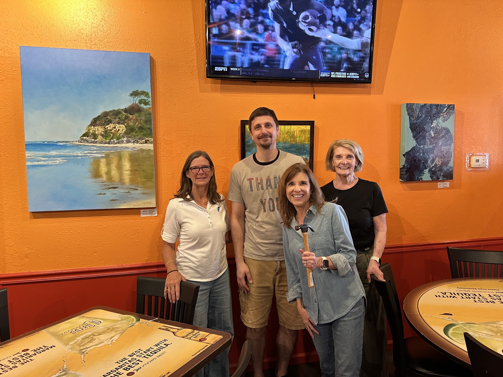 Our local Dunwoody Fine Arts Association hung some paintings here during October's Fine Arts Month. I had never been to this restaurant, but this was where I was assigned (among some other artists) for my art. While we were hanging the art in the restaurant, the staff was really friendly. While there, I checked out the menu and decided that I would bring my husband back in the next week for dinner. Being from California, I am a true lover of Mexican food and have a high standard concerning this genre. Personally, I judge a Mexican restaurant on its rice and beans. It may sound funny, but these are often the basics for many Mexican dishes, so I put a lot of weight on the taste and preparation of these two common sides. The rice was outstanding, as were the black beans. I ordered as my main dish the taquitos, and they were delicious. They were served with a creamy guac, which was very tasty. The side pico de gallo was a nice compliment to the mild creamy guac, as it had a definite bite. Also impressive is the table salsa served with chips...perfectly seasoned with just a little kick. (I like it that way). We all enjoyed our dinners, and feel I have found my new favorite local spot for Mexican food! Note: I have some food allergies, and though I didn't mention them to our waiter, my food arrived per my request, minus the dairy. They are attentive to details. (the photo was taken the day we were...