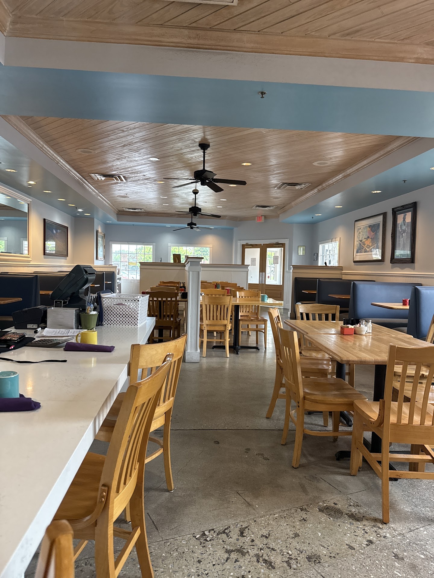 Let's see where to begin with this place. It is a breakfast and brunch place with absolutely awful decor. The art on the walls doesn't make sense at all. I was there today, Sunday, and when you go in there are TWO people up front doing absolutely nothing at all. This is important because while there seats available, it took 5 minutes for us to be seated. I have been to, owned, and or reviewed restaurants in Atlanta, Miami, Lot Angeles, Chicago, Paris, Barcelona, Rome, and other places so I know a little about how things should go. I ordered corned beef hash and my spouse order roasted potatoes/hash browns. Simple enough as breakfast food is very difficult to mess up. My corned beef hash came out cold and basically seemed to have been taken out if the can put on my plate. My spouse's potatoes were overcooked and burned. We brought this to the server's attention and it took 10 minutes to get a correction after taking 10 minutes to get the server's attention. The server, who is named Zach/Zack, was personable and very good. The only good thing about this place. However, he was working all over the restaurant due to what I assume was a lack of personnel. I remind you of the two people up front taking up space. When an order needs to be corrected then it should garner the immediate attention of the kitchen and not be placed in any queue. When we were ready to leave, we gave the check to the server and it took another 10 minutes to get our credit card back. Again, he was very good but the poor management of the place and spectacularly underwhelming food leaves a lot to be desired. Do not go here. Zach/Zack is the only asset but if he contacts me I can get him a better job at a real restaurant that is properly managed, with good food,...