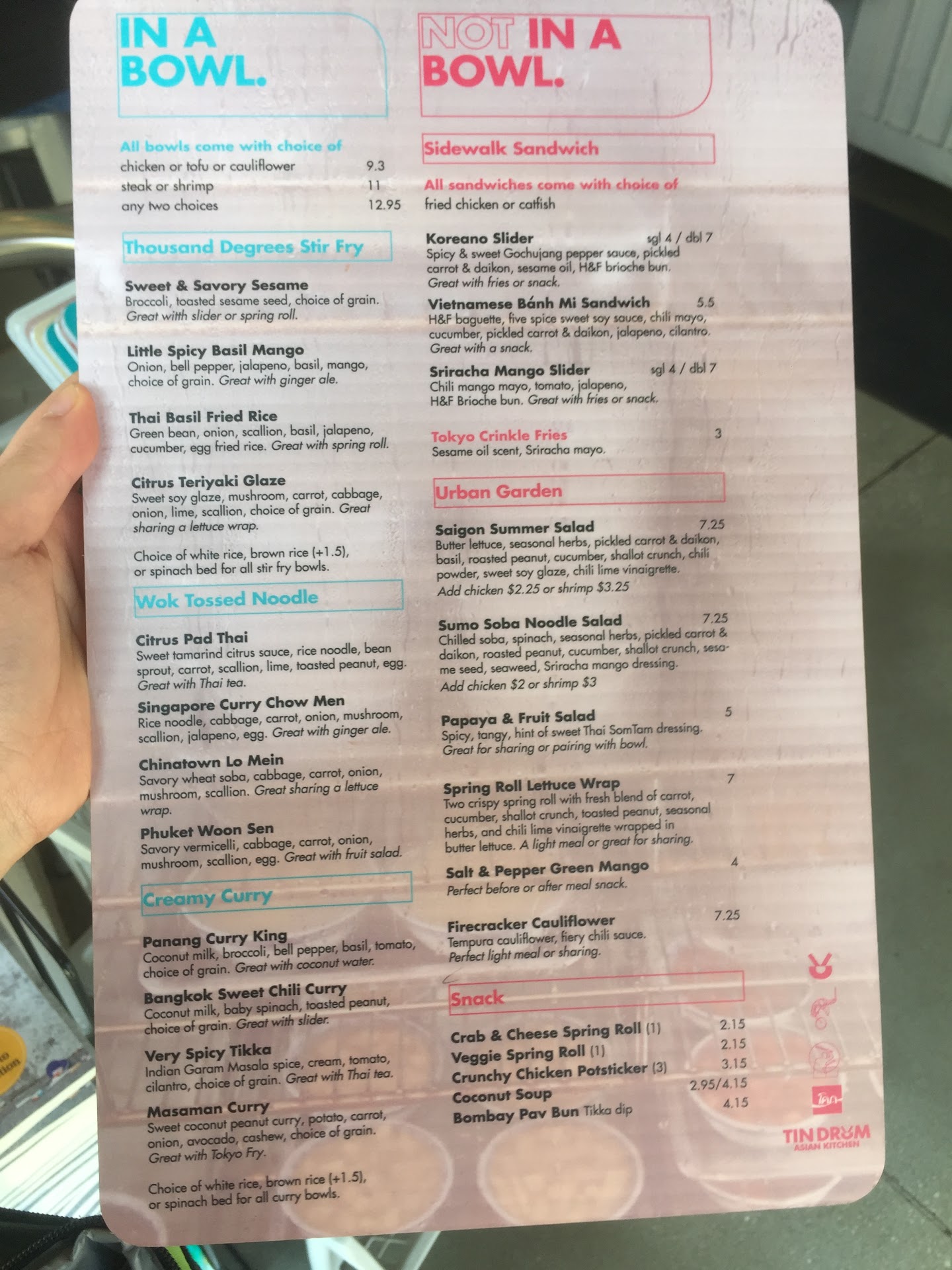 Read moreI live within walking distance of a Tin Drum, but drive past it to visit this location. My roommate and I usually receive great service and good food. Tonight, I was heading home and tried to call in an order since it was 8:25 and the restaurant closes at 9 on Sundays. I tried multiple times but the line was busy. When I arrived at 8:32, a lady (who I do not see often at this location) asked if I already placed my order. I told her no because the line was busy when I tried to call. She said she did that intentionally since they were closing soon. I asked if they closed at 9 still and she said (with an attitude) they were closing at 8:45 since tomorrow is Labor Day. Iâm not sure why those fifteen minutes mattered, and this time change wasnât posted anywhere. I understand that the employees may have needed a break, but if someone had answered when I called I wouldnât have wasted my time driving there. Since I still had over ten minutes until their new closing time, I stood in line behind 1 guy to order. It took a few minutes. The lady then tells the cashier that theyâre not taking any more orders while the other guy was still placing his order. Iâm not sure why she let me stand there for a few minutes and waste my time instead of just nicely telling me that in the first place. I have never had to deal with bad attitudes at this location until today. If you want to close 15 minutes early, thatâs great. You donât have to compromise customer service in...