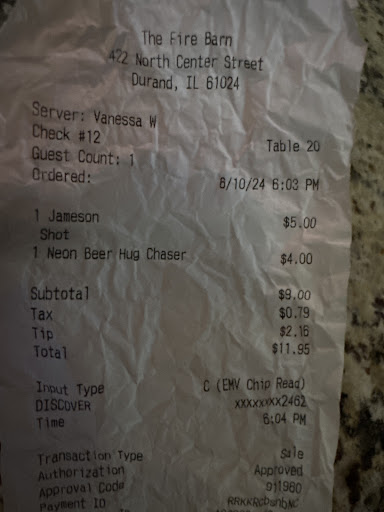 Read moreI continue to give it a chance because it's local. . . . Facebook menu had applewood bacon listed on burger . . . Was given cottage bacon, a cheap, limp canadian bacon-like substitute. I called back to mention this to which I got response that menu eecently changed and should have been noted in spite of fact I ordered one in August with bacon. I was challenged to go back to the menu and refresh my memory which caused me to think I was sure I had seen bacon listed on the menu for that Burger. I was right!! I called back and the owner answered and explained the very same thing regarding the cottage bacon. I told him he needs to update the Facebook carry out menu page because it still stated that applewood smoked bacon would be on that Burger. I've had this run in with food before with the establishment with nothing in recompense. I call myself done with the fire barn because there is no real customer service that's going to continue to either correct and rectify situations such as this or make amends to the purchaser and cause them to give the Fire Barn a second chance. Sorry...