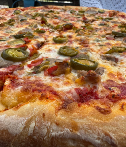 Now, onto the star of the show: the pizza. We went big with the 18" Heater, and holy smokes, it delivered! This pie was packed with flavor – think spicy sausage, a generous scattering of jalapeños, and green chilies, all melded with cheddar and mozzarella on a classic marinara. The crust was that perfect kind of crispy, and every bite was a burst of deliciousness. You can tell why it's a "staff favorite" – it's just that good.
