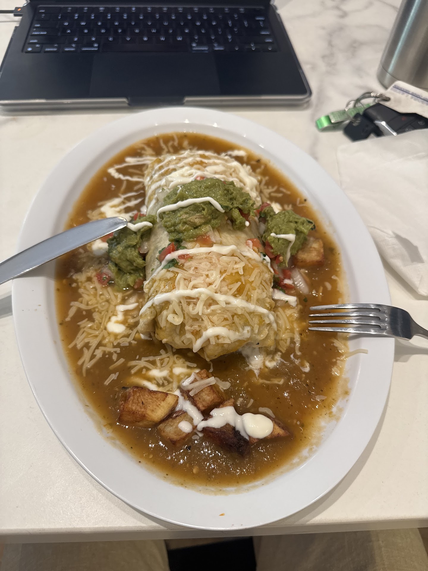 Read moreYum! Fast food that’s AWESOME! Support local business. Great outdoor patio dining area and bar. Went a second time in June 2025 and, unfortunately, have revised my food review. Food was meh, sadly. The good news is the outdoor patio dining area is quite pleasant. Staff are professional and kind. In summer, being able to bring along in my 18 lb. dog on a leash onto patio rather than locked in a hot car is much appreciated. Dog owners keep pup on leash under control at the table. We had breakfast burritos filled mostly with unseasoned white rice and not many other ingredients, diluted green chili sauce smothered it— all quite opposite of my previous experience when the food was delicious and a good portion size. Customers order food and bar drinks at outdoor booth or bar. Self-serve water station (including water bowls for dogs👍). Servers bring food to table. Customers bus their own tables and get their own drinks. A post-pandemic scenario Limited staff and service at table but works. Bummer the food...