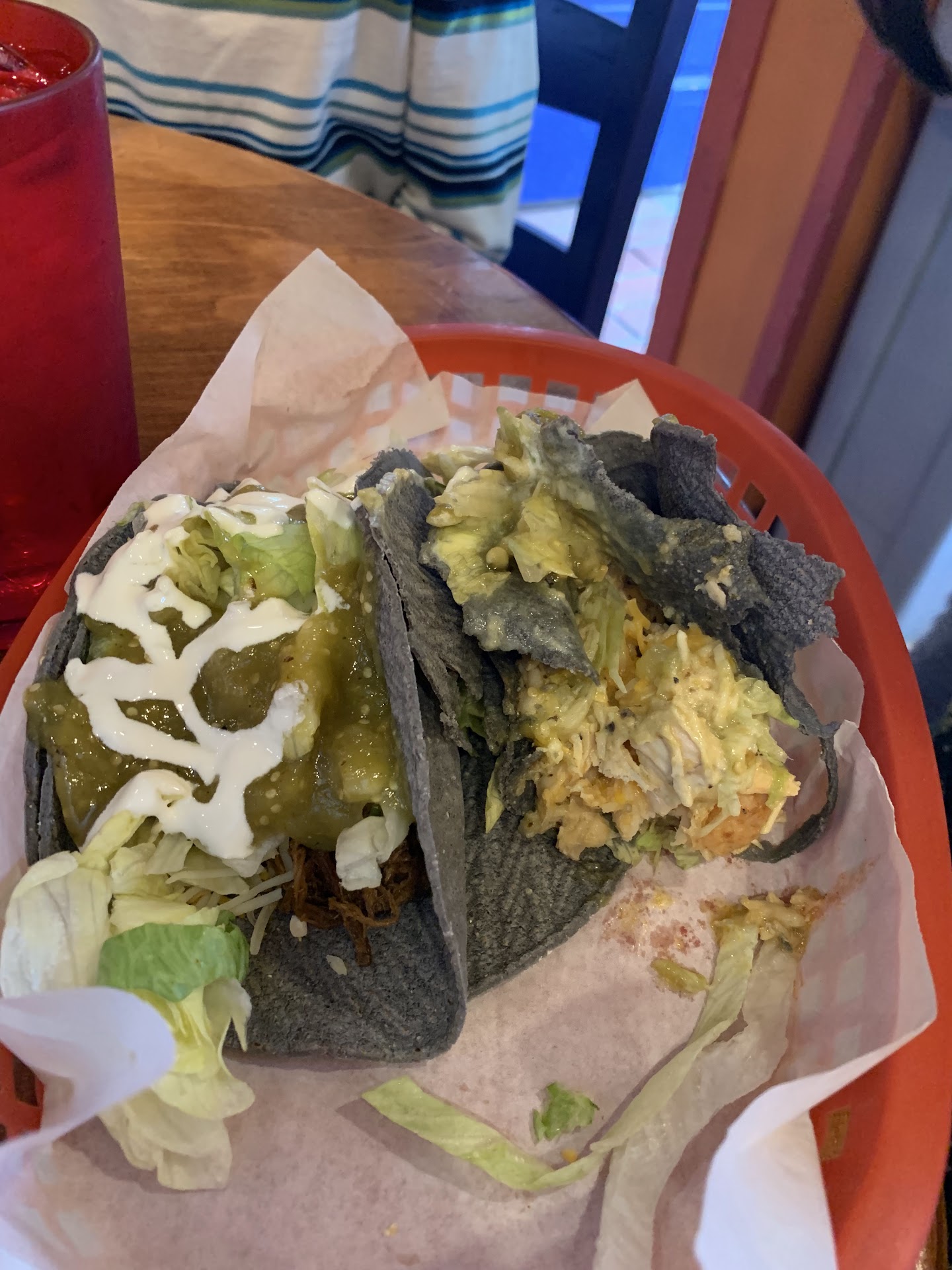 Walked in, stood directly at the counter, and the woman behind the counter looked directly past me and greeted the huge party with unruly children behind me. She never looked at me. Until I spoke up and asked to order. I got my three tacos served in a plastic basket lined with paper and they were impossible to eat as they immediately broke and fell apart due to the liquid from the salsa. Used a fork to eat the pile of what were tacos and ate the soaked paper now at the bottom of the plastic basket along with the tacos. I asked the employee on the floor for a dinner plate and he looked at me with complete confusion as he couldn't understand the word "plate." They have employees that can't understand the English language or even can put "plate" and "plato" together in their head, so don't bother asking them for anything. The plastic basket they serve their tacos in is typically used for French fries or tortilla chips anywhere else in the world, not tacos that would be better served on a dinner plate.