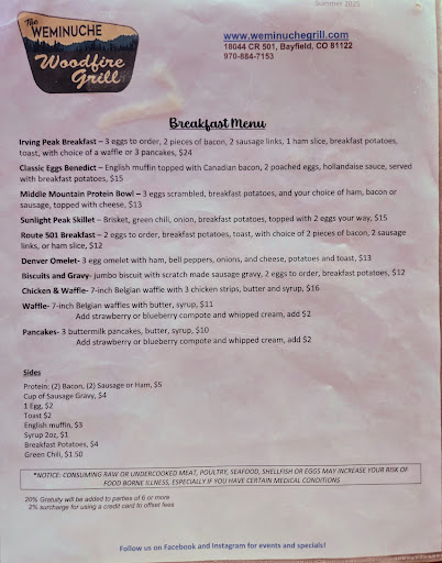 Read moreMy wife and I drove to Vallecito, from Durango to do some hiking, and on our way out we decided to stop and try the Weminuche Woodfire grill as we hadn't been before, my wife has celiac disease, and their menu boasted gluten free options. From the time we ordered to when we got our food was about 40 minutes wait time, they didnt appear to be overly busy at the time. When we ordered I ordered the Swiss cheese and mushroom burger, and my wife ordered a chicken sandwich with a gluten free bun. When we got our food it looked good, we dug in and about halfway through we realized that I had received the gluten free bun and my wife had ended up with the regular bun, Both bread buns tasted weird, and not like normal bread so it was hard to tell from the start, we mentioned it to the waitress who when she went to check and came back she brought a gluten free bun which matched with the bun on my burger. I only ate about half of my burger as it had no taste, the onions had no taste, the meat which I ordered medium rare but came well done had no flavor, the cheese had no flavor, the only thing with flavor was the bread. Unfortunately their incompetent chef had messed up both of our meals, the only good thing was the potatoes which were on point. and of course we payed over 40$ for two botched meals as we wernt offered any discount of comp for the disappointing food. We will not be...