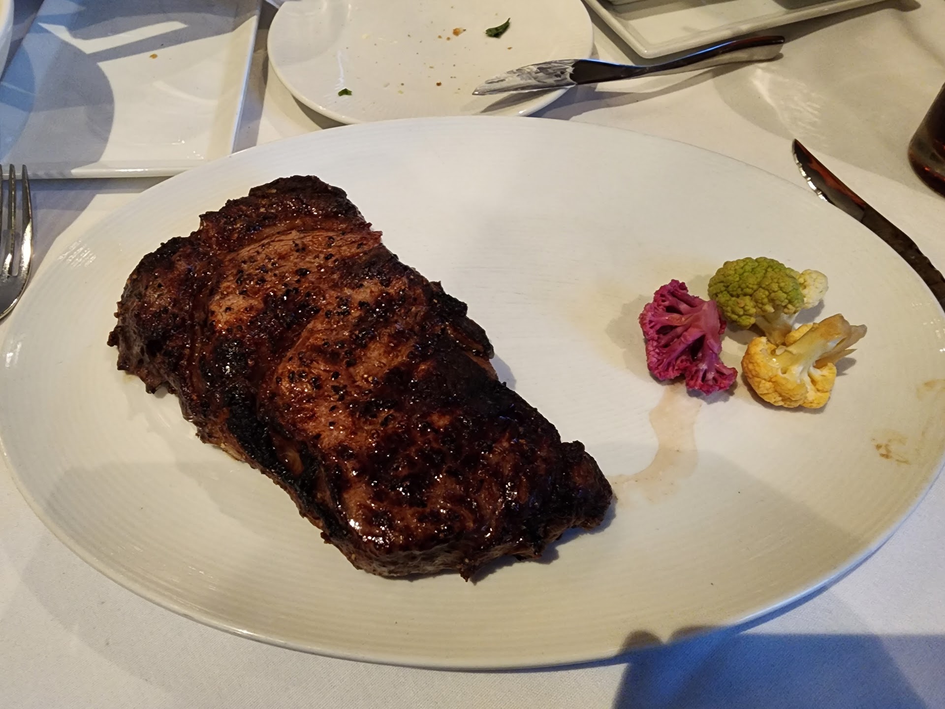 The steak… for $125 I expected my 22oz bone in 35 day dry aged ribeye to be excellent. It was just average, I’d compare it to Texas Roadhouse. The $60 bottle of Santa Margarita Pinot Grigio was ok, but again, way overpriced when the food isn’t up to par.