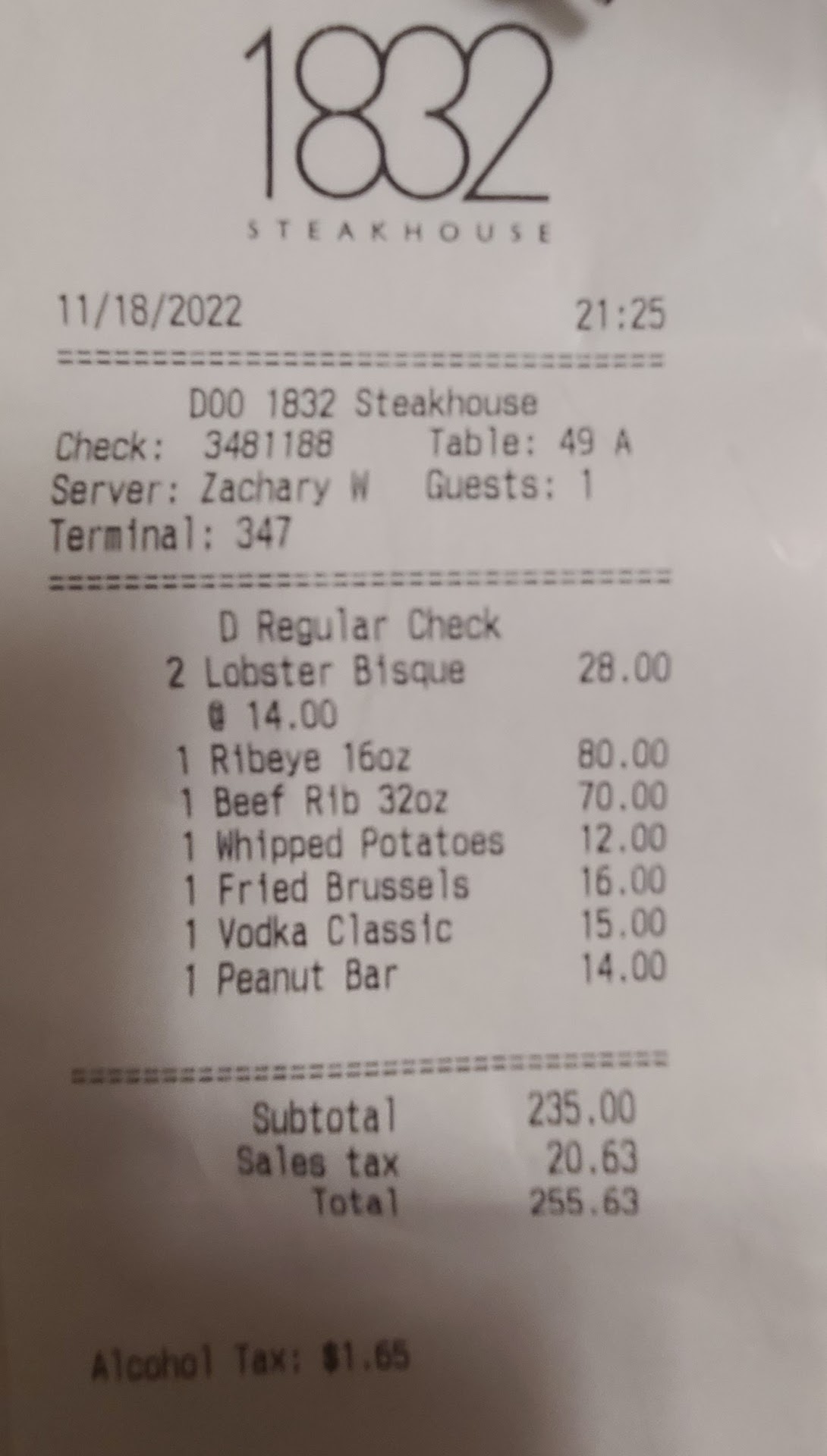 This was high dollar grub for at $200 per person and we’ve dined at many 5 star restaurants, Capital Grille, Ruth’s Chris, Wolfgang Puck’s, Maestro’s, etc and had expensive cuts of beef like A5 Wagyu and never come close to spending what we did at 1832 on just the food.