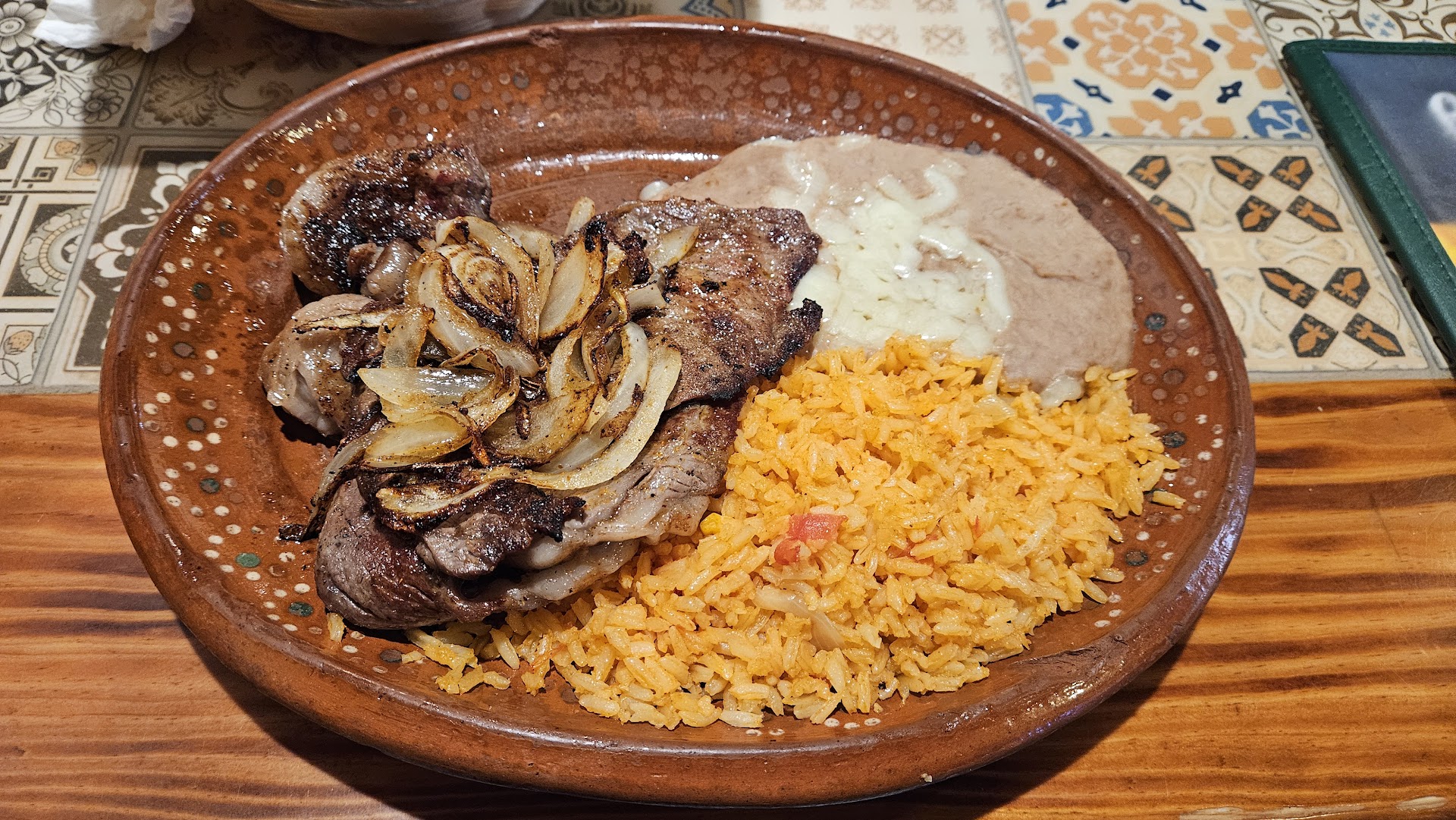 Enough said about your menu. Let's get to the food and stuff. We were offered chips and salsa. I ordered a water as a drink. And while we waited for food I went to check bathrooms. Bathrooms were clean but there were plenty of damaged things throughout the bathroom. No big deal. The bathroom itself appeared clean and I could smell it too.