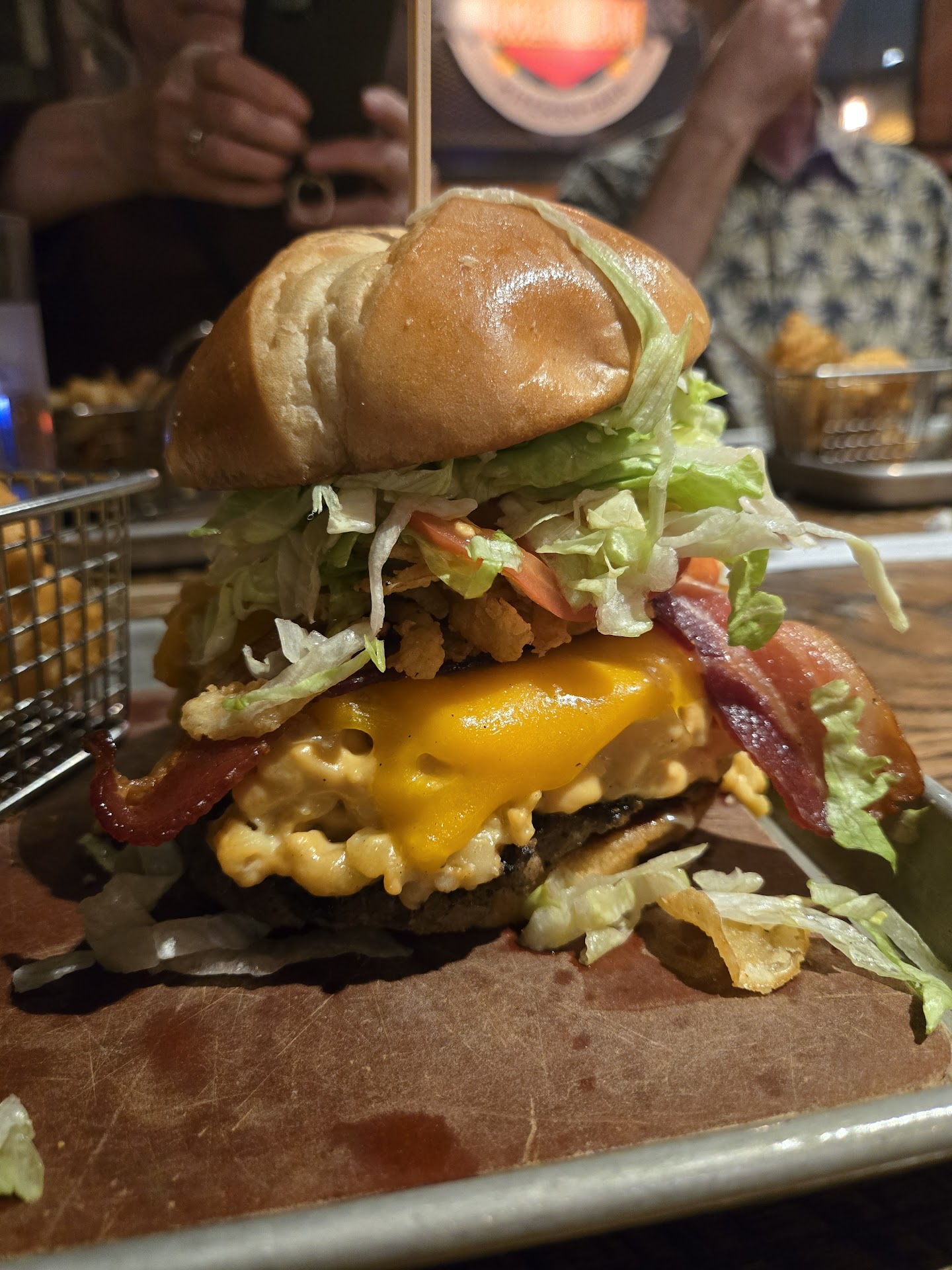 Read moreI had eaten at Guy Fieri's several times in the past and it was always really good with great service. My two grown sons came into town to visit. I took my family to Guy Fieri's on 06/22/24. I told my sons that it was a great place to eat. We got to the restaurant early to avoid the crowd so there were not alot of people inside. We got the menu and noticed that it appeared to be smaller than the last time we had eaten there. There were only three appetisers to choose from (there used to be Jalapeno bites wrapped in bacon that was incredible). Three of us ordered bottled beer and asked for mugs to pour them into. The waitress came back with three plastic cups and was carrying the cups by the top with her thumb on the inside on of the cups (YUCK...needless to say we did not use the plastic cups) She stated that they did not have any mugs. The waitress came by one time with a refill for my oldest son (who had ordered a soft drink) and then walked off without checking on anyone else. We did not see our waitress again until the food arrived. We ordered the loaded BBQ french fries as an appetiser and they were good; however, our dinners were not that great. One of my sons ordered the bacon mac and cheese burger and he stated that the mac and cheese was very bland and the bacon was soggy. My other son ordered the prime time american kobe burger and stated that it was ok (but not worth $23). My wife ordered the old skool steak sandwich. The sandwich was really small. She stated that the steak had good flavor but was cold. I ordered the buffalo wings. The wings were pretty good but there were only 7 and it did not come with any other sides (for $20). I am not sure what happened to the menu, food and service but I think if Guy Fieri knew what was going on, he would be disappointed. Unfortunately, I will...
