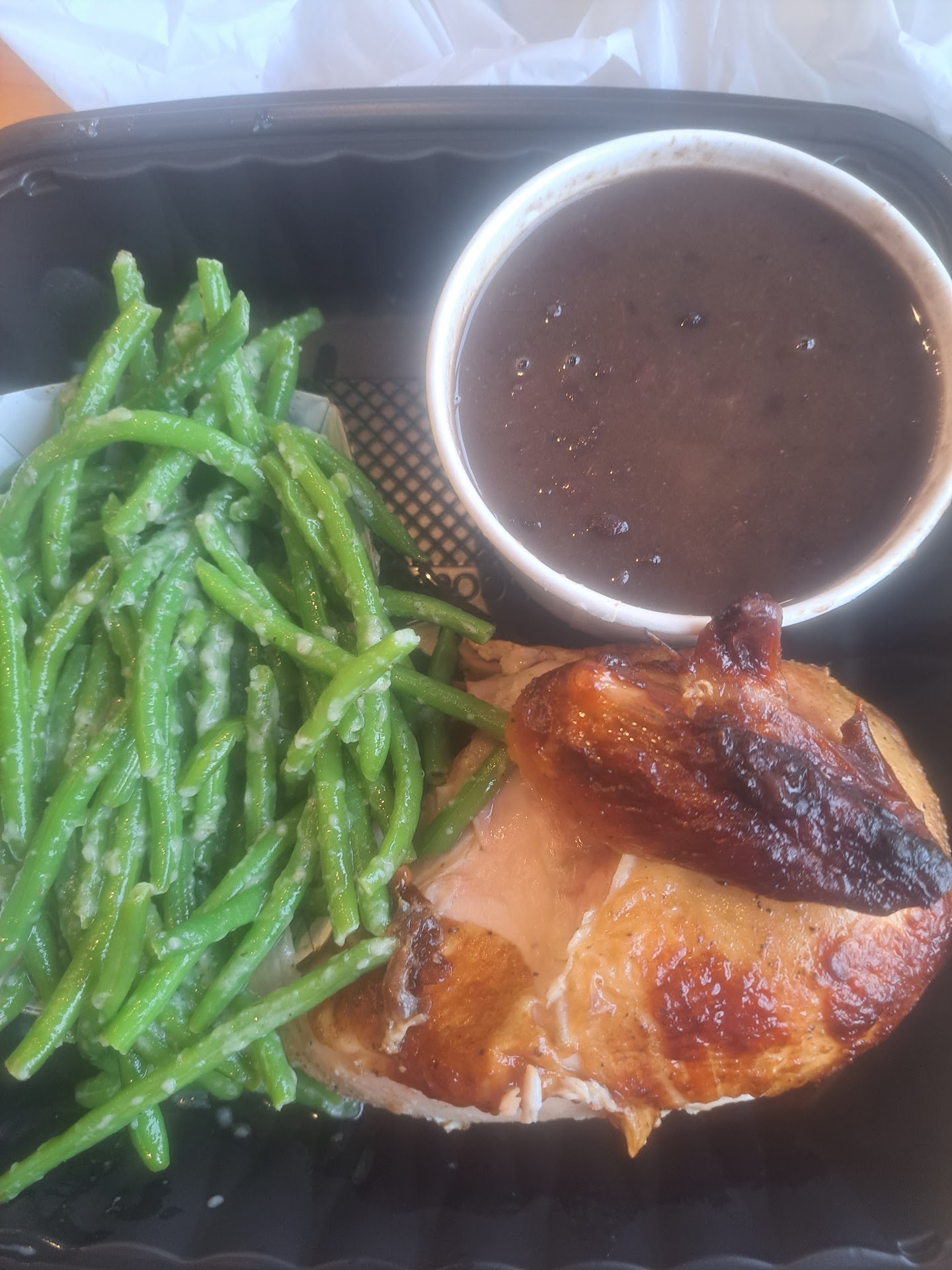 Also, think about this. Harris Teeter rotisserie chicken is about 8 bucks right? A whole rotisserie chicken here costs about $22 with two large sides. One, the Harris teeter rotisserie chicken tastes like a long overdue Managers Special chicken. Two, take the Alpaca whole chicken and put it in the oven and pretend you baked it. Your family will love your "cooking skills." The difference in quality is as big as this...