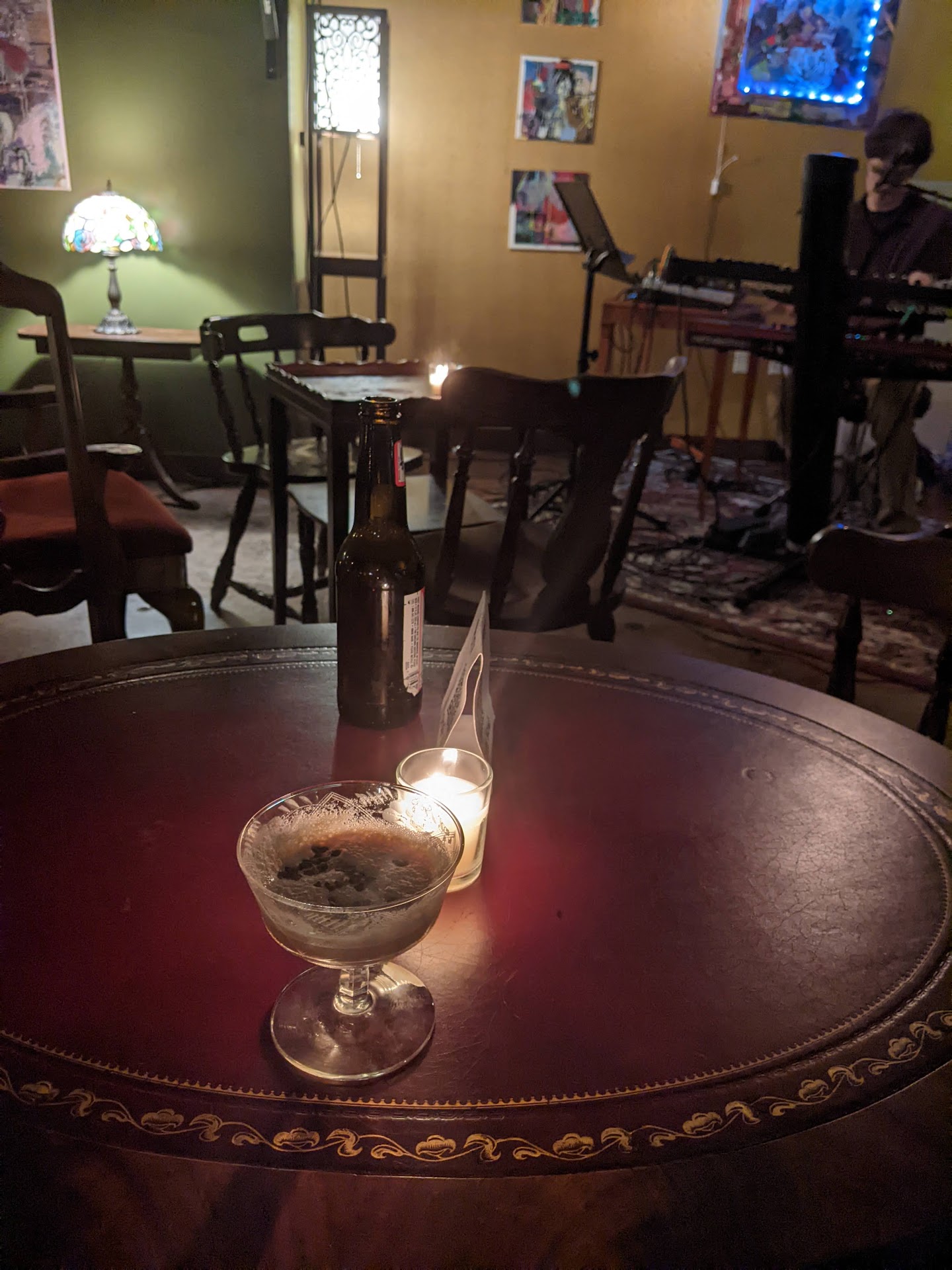 Read moreOne of my favorite bars in the triangle area that makes you feel like you aren't in the triangle area! This bar is tucked away behind the usual strip of businesses like Viceroy and gives almost a speakeasy vibe with it's close sitting and being low lit. The drinks range from $13-$16 depending on if you want something like their classic, absinthe, or espresso martini - which I highly recommend. There are also non alcoholic drinks along with light snacks, but there is a menu for Viceroy and stairway to get your food from there. Arcana starts to come alive around 8 pm with live music ranging from low-fi to folk bands and tarot card readings. It gets loud and packed afterwards but the bar allows close convos with their little lounge areas being intimate. I love coming to Arcana and can't wait to come back for their music, drinks, tarot readings, and even...