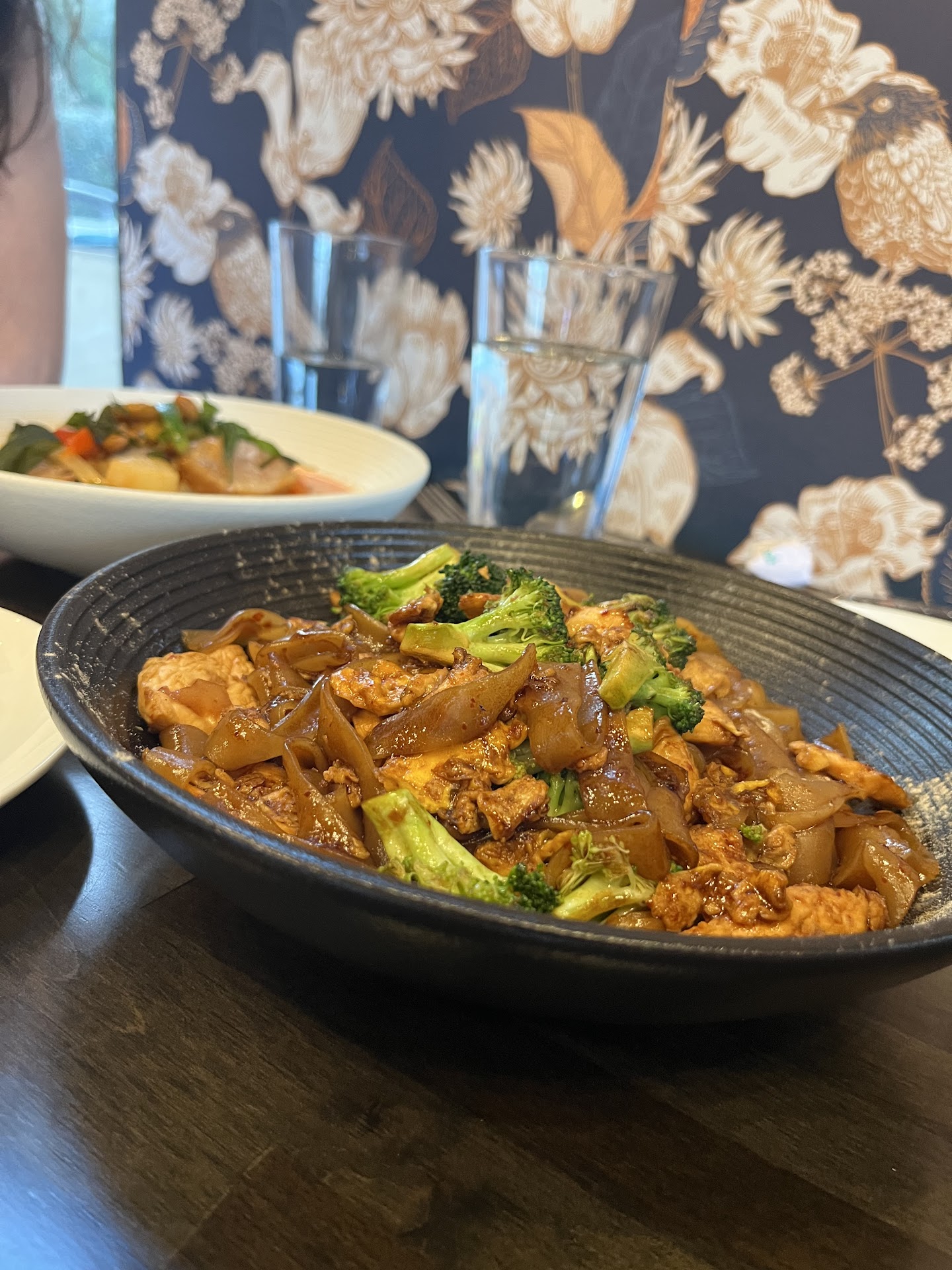 My boyfriend got the tofu pad Thai which normally comes with fish sauce and eggs. If you are vegan or vegetarian, they can leave out the eggs and/or fish sauce.