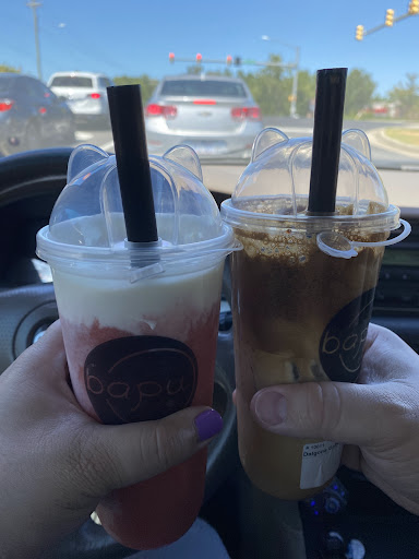 Located in a corner of the Hope Valley Commons shopping area, Bapu Teahouse Durham looks inviting from the outside with its cool boba milk tea structure by the cafe's front door, showing Bapu's simple logo outside. Bapu's ambiance inside looks artsy, with cute aesthetics and cool atmosphere.