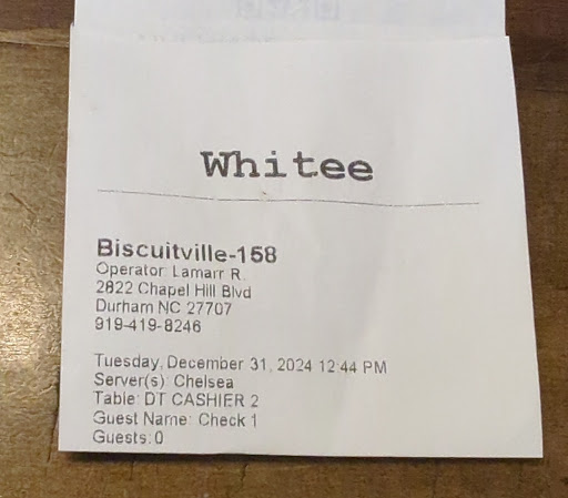 I LOVE biscuitville but I’m extremely unhappy with my visit. I’m still in the line where I’ve been waiting for almost an hour…I know things happen but this is RIDICULOUS. Managers need to be called in or something because there’s no reason it should take this long. To top it off, I get the same thing each time and this time they ran out of fries. Again, I know things happen but it’s extremely disappointing, especially when you’ve been waiting for an hour and don’t feel like looking for another breakfast spot. This location is also in a terrible spot, when the line is backed up (which is often I assume, this is my second time having to sit through something like this here) the line is backed up into the street. Which is dangerous and just chaotic looking. Don’t know what could be fixed there but more staff might help push the line along. Even after I placed my order, I’m still sitting 2 feet front the order thing. What in the world is taking HOURS at the window???? I’m just hangry at this point but I’d like to see some changes happen to improve...