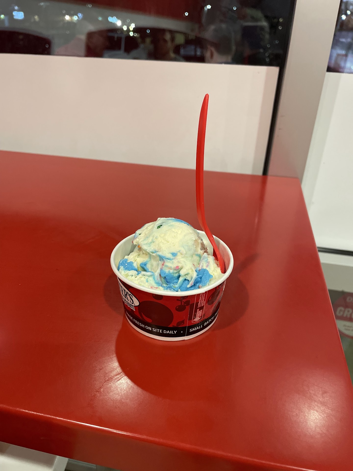 As much as I wanted the peanut butter ice cream, I selected another flavor that was colder and firmer than my sample. This was our 3rd visit with nearly the same outcome. We'll look for another store, like the one on Durant...