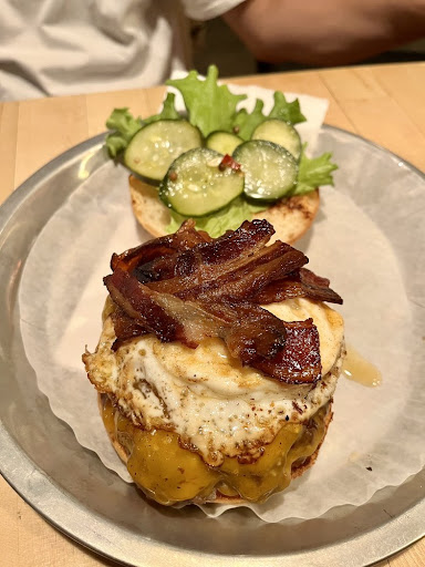 Read moreCute restaurant. I liked the atmosphere, but not so much the food. The dirty fries were good. But the burgers I felt were just "meh". The overeasy egg burger came with bacon and didn't taste very good. To me at least. It was my first time ever trying a burger with a fried egg on it. I love fried eggs and usually enjoy dunking my toast, so figured it's gotta be good on a burger? Maybe the oil used for frying gave the egg a weird flavor, I think that may have been part of it. The bacon was pretty flacid and gave no flavor or crunch to the burger. My husband had a burger that came with pickled cucumbers that were like a good inch and 1/2 thick that just took away from the meat and pimento cheese. He said there was no need for the cukes to be that thick. My 10yo got a puppy dog from the kids menu and asked for mustard on it. The mustard we got was some like horseradish-stoneground mustard blend that I mean c'mon. Most kids don't like that kinda stuff. We scraped it off but it still pretty much ruined her meal. Anyway this was our first time there, and I dunno maybe that info was on the menu? But we stood in a long line where there were no menus available to look at. I pulled up the menu online from my phone but unless I missed it I didn't see anything describing the kind of mustard offered. The cashier should've explained to us the kinda mustard used so my daughter could've at least asked for it on the side. The entire hot dog was drowning in the stuff. Anyway the fries were good though and the people next to us got some desserts that looked really good! I'd try this place again if in the area but I would not...