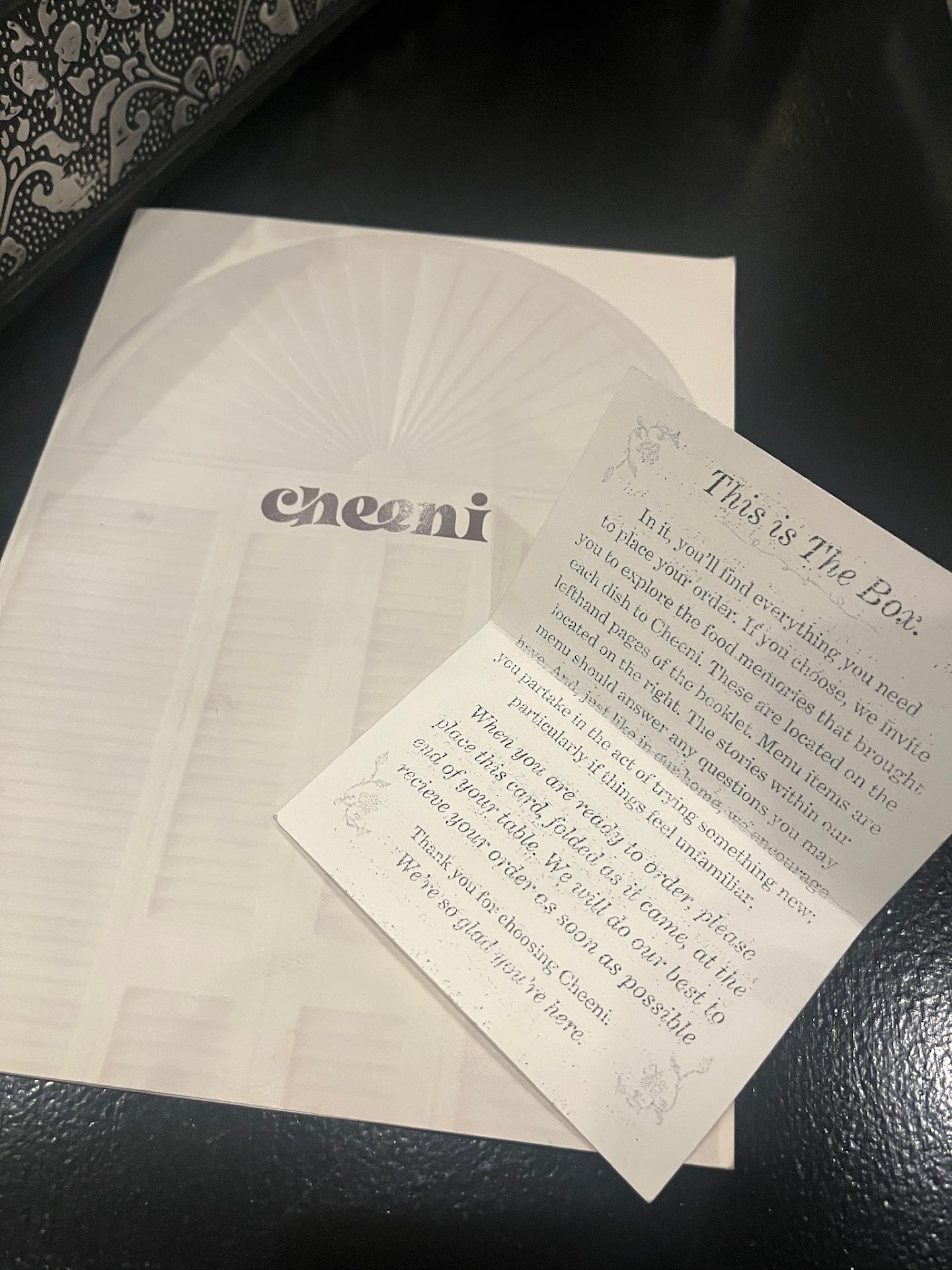 First off, I’ve been to Cheeni twice before this last time, both times it was great, save for maybe slightly cold waitstaff. Whatever, I prefer a hands off waitstaff anyway, truth be told. This last Sunday however, almost everything was so off that I won’t be going back. We arrived after having made a reservation and since been there before I knew the drill with the monkey card left out to order. Unfortunately we waited for someone to even walk by to tell them we had no monkey card in our box. No biggie, it happens. We ordered our starters and drinks, then mains.