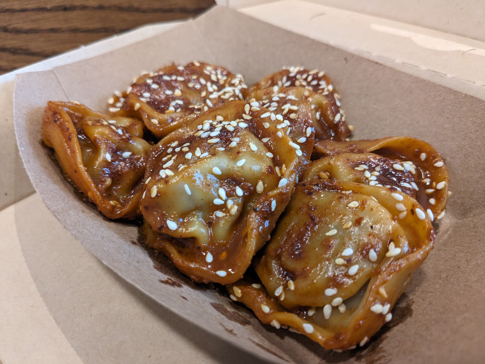 The dumplings are well seasoned and the skin is chewy (none of the skin broke so +1) but the sauce is a tad too thick and probably didn't help that it was served in a paper plate where it immediately started to absorb any moisture present.