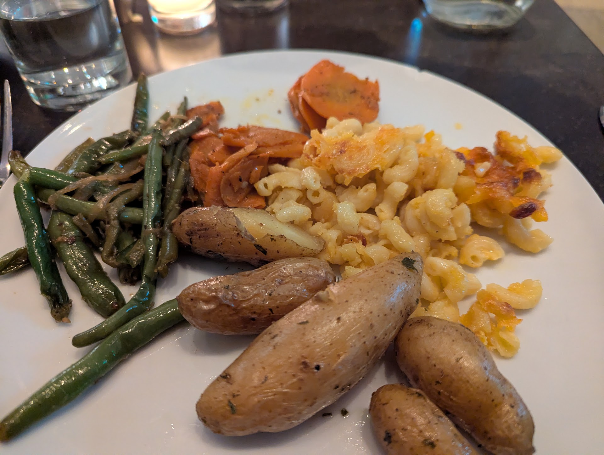 For my appetizer, I had dirty, gritty mussels on toast, the toast, I guess, was to mask the delight of crunchy dirt. For a shared app there was a shell in the shrimp dish, where the sauce was an unforgettable (though nearly inedible) salt reduction.
