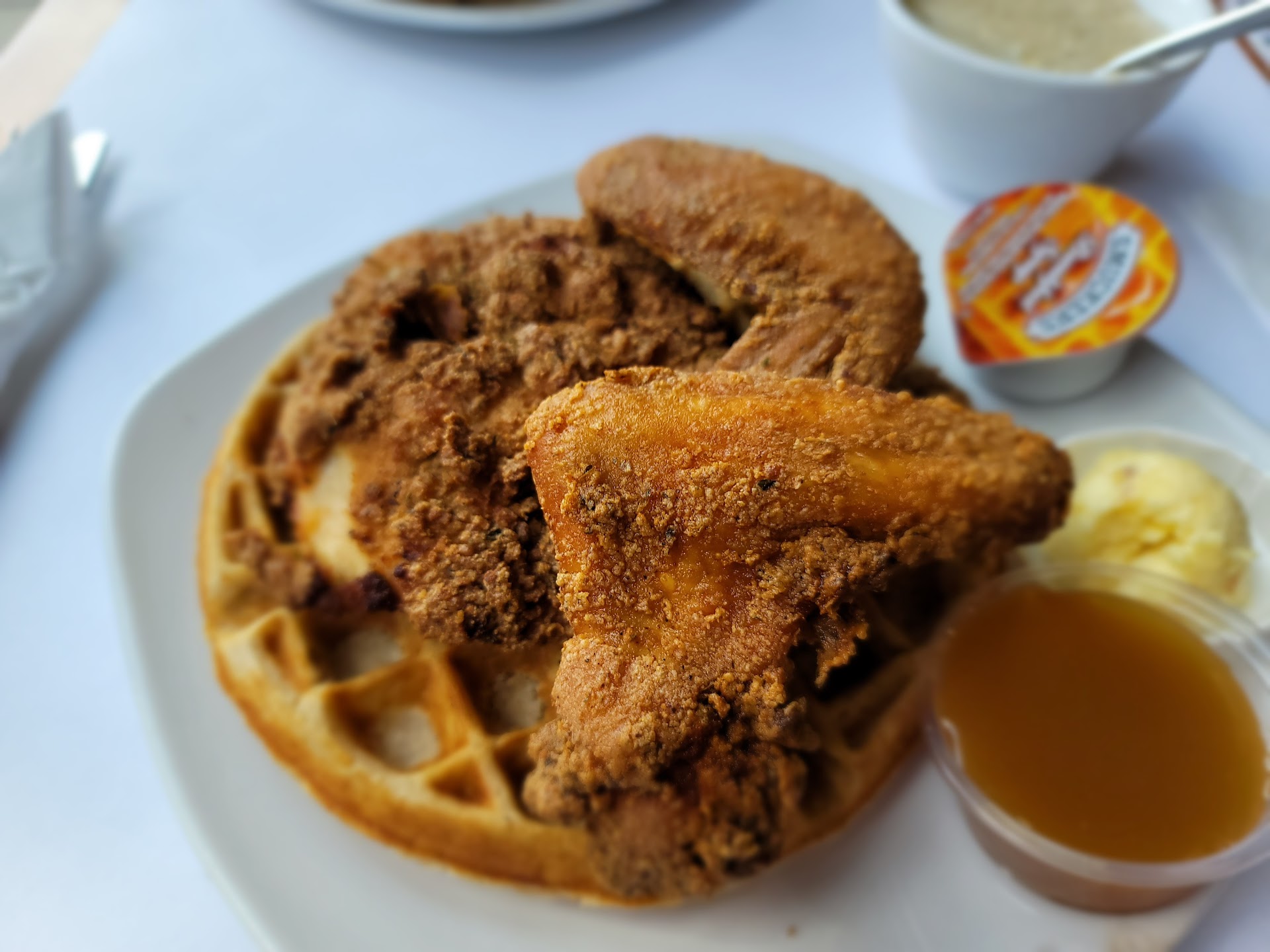 Regrettably, when our food finally arrived, we found that the chicken was overcooked, and the waffles were undercooked, creating a rather unappetizing encounter, particularly for my young boys aged 4 and 10. This disappointing experience at Dames Chicken and Waffles in Durham left us questioning the consistency of quality and service across...