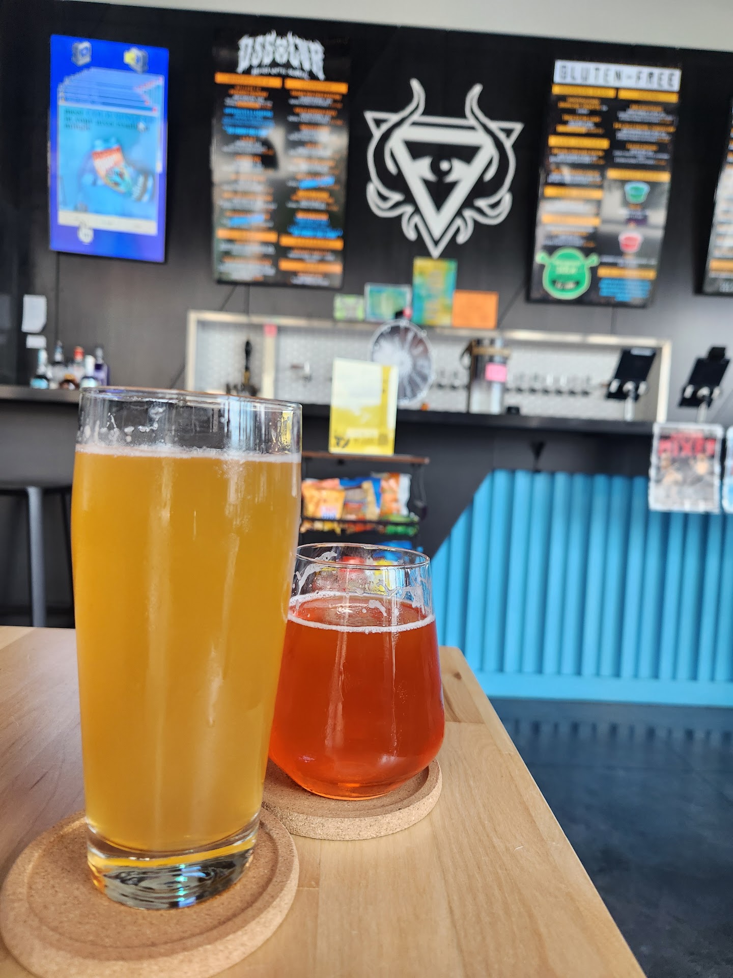They don't have flights but they do provide half pours and let us do some tasters. My husband and I tried the Bleu moon with an orange and the Spaghetti About it which is a beer cocktail. They also have plenty of non alcoholic options and also other options such as wine and seltzers and cocktails.