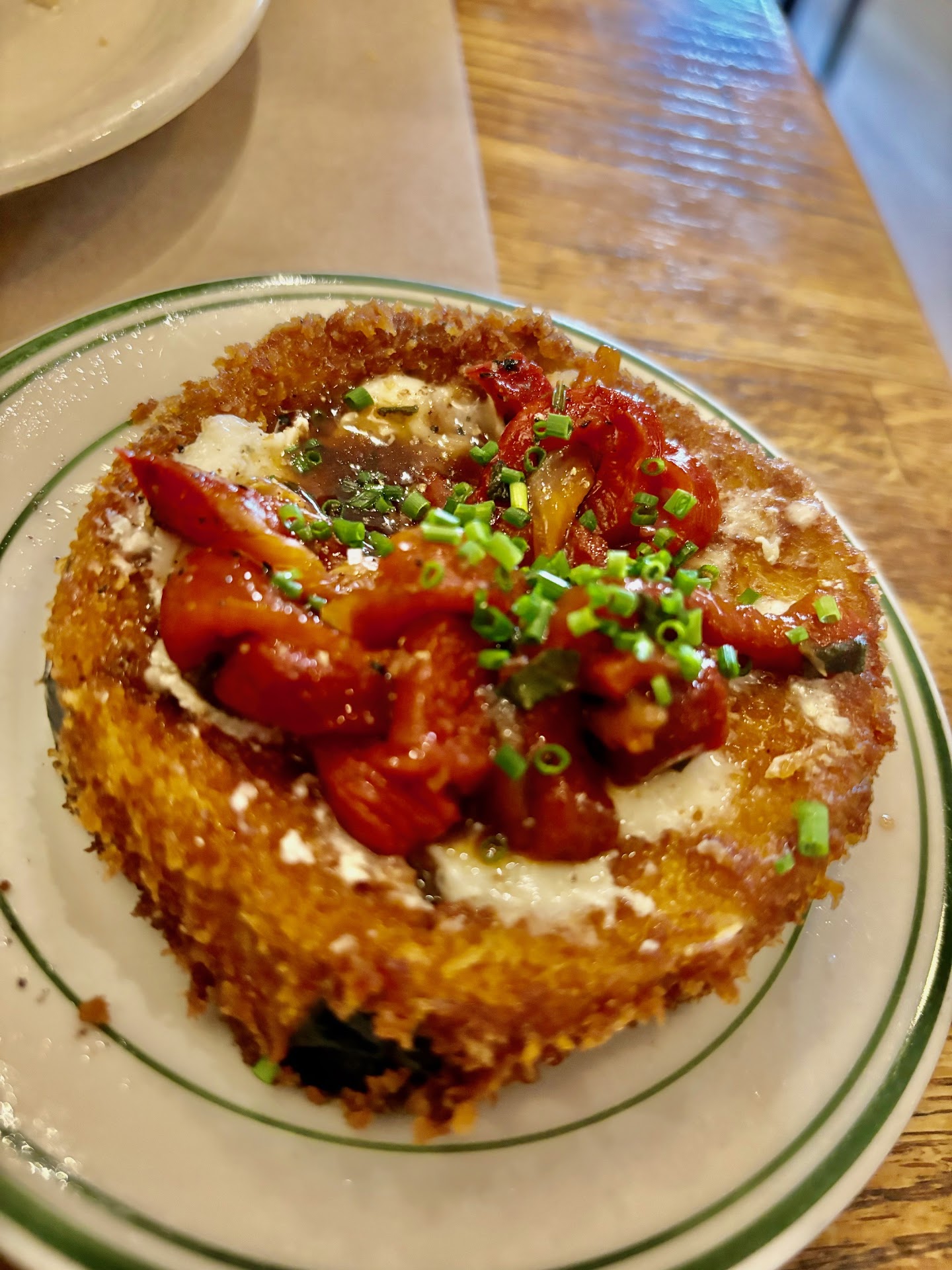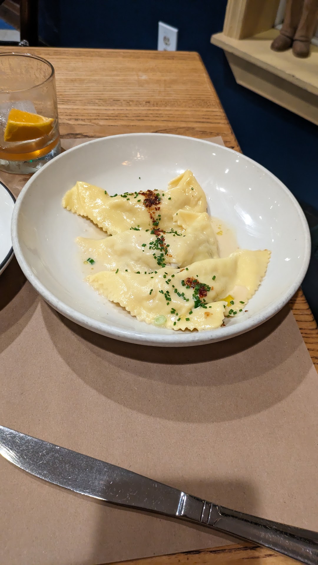 We visited Gocciolina for our anniversary as a special treat. I booked my reservation in advance and they were able to accommodate us about 20 minutes early. They weren't wildly busy, but it's a small restaurant which understandably makes it difficult to get a seat if they have even a steady crowd coming in. We were sat at a high top, which seemed to be the only indoor option for a party of two other than the bar. Not a big deal, but I do prefer a normal table.