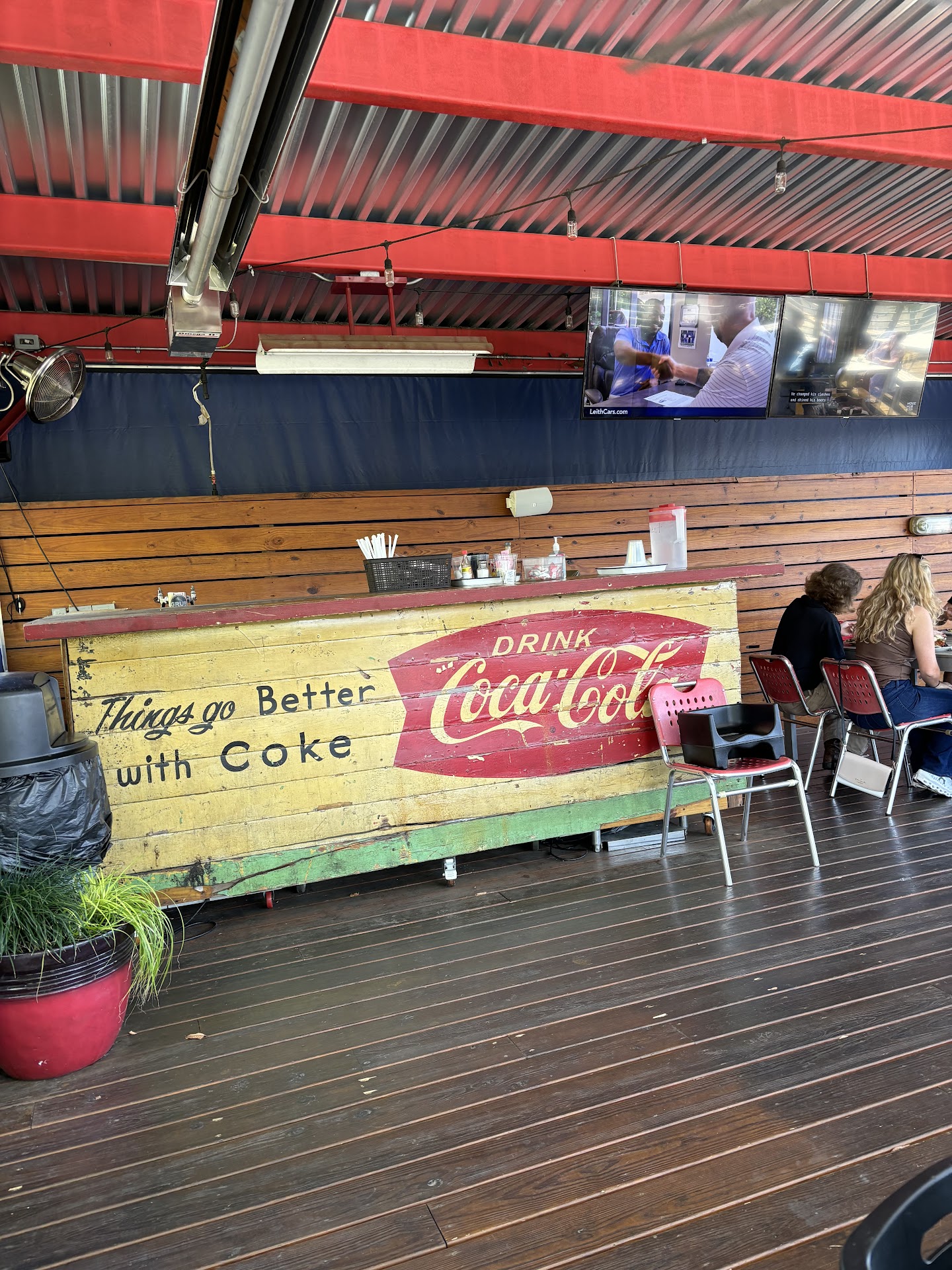 Pro tip for upstairs is that there is a water station up there as well as inside, plus utensils and condiments are up there too. Plenty of people were leaving their dishes to be bussed, but there was a dish bin up there, so we bussed ours ourselves.