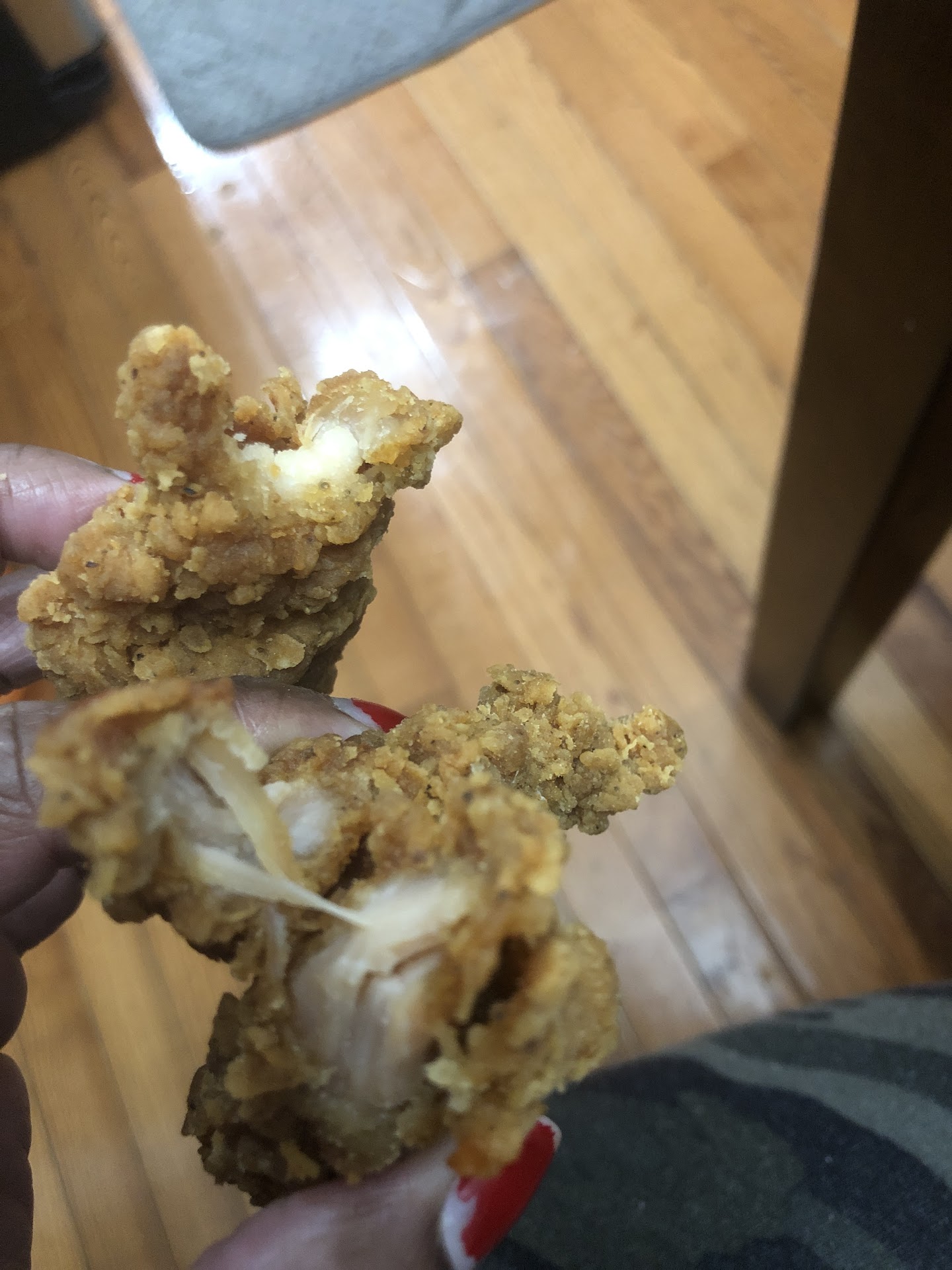 I should open and inspect before leaving the place. I had to rush, so I just walked out and just started eating while driving, I could not even see how look like my wing. But I stopped my car at the rest area to inspect my food because I found very tiny piece of wing. I hoped no count for this small piece.