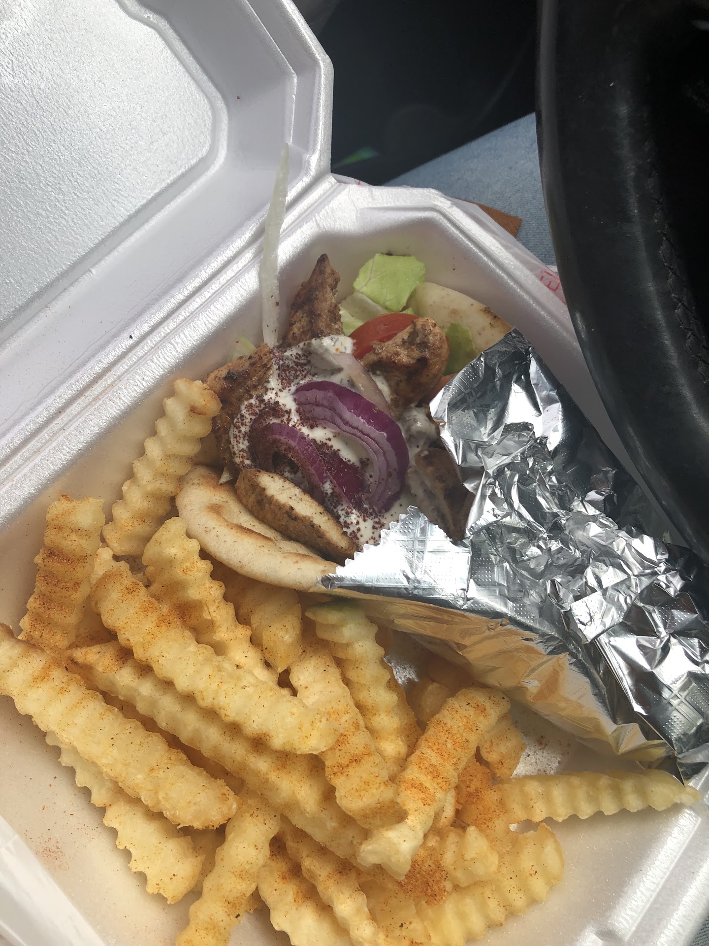 Read moreBest gyro I've had in Durham!! Though this place has a weird menu that includes everything from basic Mediterranean staples (gyros, falafel, shwarma) to fair food (funnel cake, blooming onion) to drunk college kid food (chicken wings, curly fries, etc), I have enjoyed everything I've tried. Except their fries. Their fries are just ok, so I'd recommend substituting or just getting the entree not the meal. Go for the best homemade tzatziki sauce I've had in this area, or perhaps some baba ghanouj, or one of their many other diverse options. Cheap, good eats. Nowhere to sit though, so take it home or go when it's warm enough to eat it outside somewhere. Definitely a hidden gem in terms of...