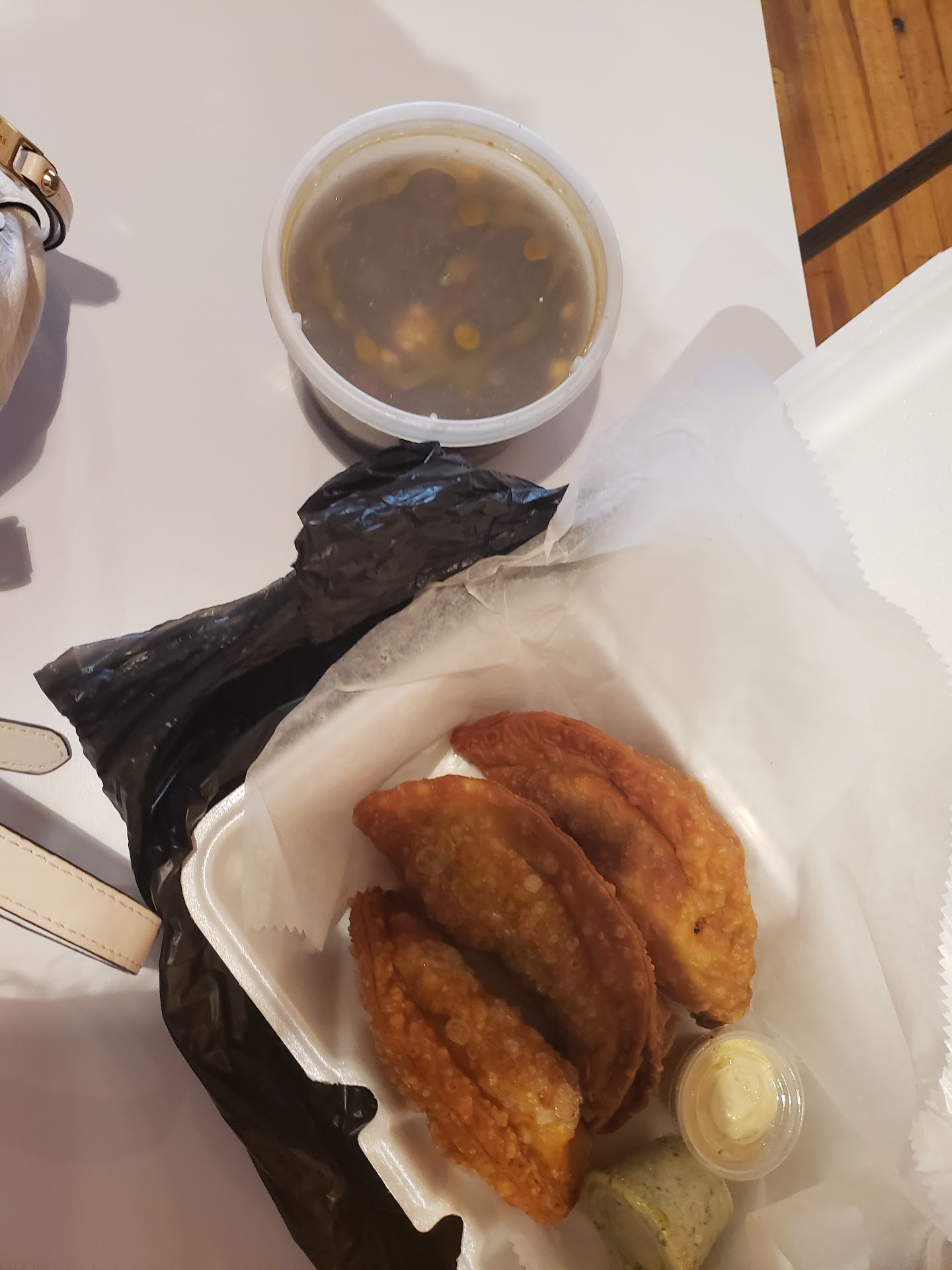 Ā Ā Ā Read moreI ordered through the lunch service that partners with work. I hadn't had Puerto Rican food in a while (many years), so I was a little nervous to try- im Mexican and my palate is very much in tune with Mexican food. I had two empanadas- beef and maduros and the other was pork-u-pineapple. They were both delicious! They came with two sauces each- a red spicy one and a white and green one that wasn't spicy. I have no idea what is in either sauces, but the spicy one complements the beef and maduros one super well and the white and green one paired perfectly with the pork one. I also ordered flan and a guava and cheese pastry. The flan was absolutely delicious and sweet but not too sweet. Here's the kicker about the guava and cheese pastry- I was really looking forward to it because I've had this pastry before outside of this restaurant and I wondered if it would be better. They ran out, so I was disappointed, how ever...this is great customer service- they replaced it with the tres leches, which costs a bit more, and sent an apology note. I've ordered from other places that do not go through the hoops to send a note and offer a replacement OR give me my money back. So yes a little sad about not getting the guava pastry, but totally content with the swap and note. So my overall experience was wonderful and this restaurant has a new fan! Highly...
