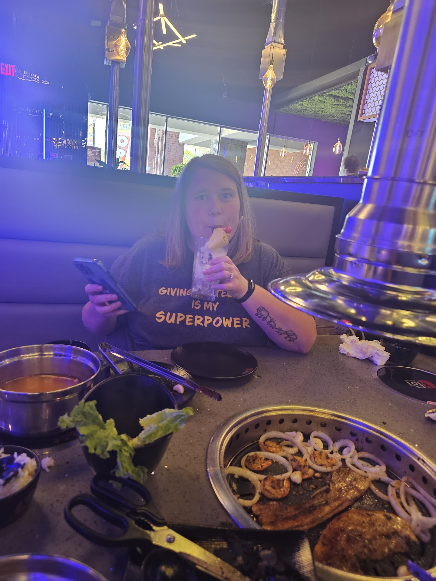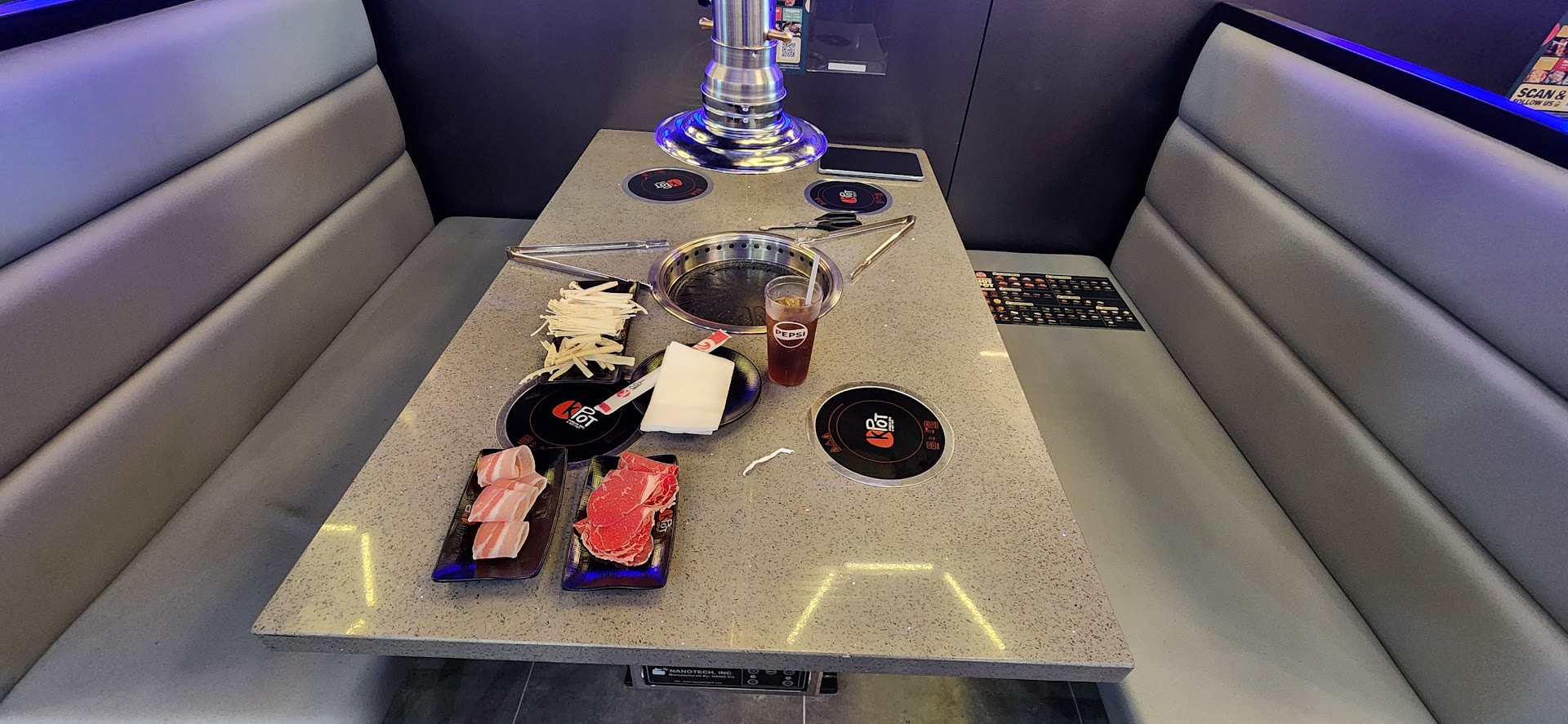 Read moreA fun (albeit bit chaotic) Fatherâs Day experience! I took my sisters and father for the celebration at the end of the first week of this restaurantâs opening. TW, our server, brought good energy to the dinner and was very kind and energetic. He made sure to address our asks and gave good advice on what to order. He was losing his voice from working so much during this chaotic week :( speaking of, the flow and process did feel a tiny bit chaotic, despite having had KBBQ before. Since the restaurant was busy, there was a wait (understandably), so we browsed nearby stores until we were notified of the table being ready (faster than we anticipated, a plus!). However, upon arriving in the lobby, the table was actually not ready yet, so we hung about in the lobby for another 5-7 minutes. Since opening week is always crowded, the seating in the waiting area wasnât enough to accommodate everyone waiting, but I think that will settle down over time. Some of the chairs werenât fully dried off after cleaning, so we used some of the provided napkins to dry the seats (not a big deal!). The bubble tea and tapioca pearls were really good (I had a taro and ended up getting a classic black milk tea to go as well; they were that good). I feel like alcohol was pushed a bit much for my personal comfort, especially with 3/5 of us being younger kids. But that is a gripe I have with society and industry as a whole nowadays (I am mostly sober due to health reasons). We stuck to NA bevs. This is an AYCA place, and I actually liked that the serving sizes were small - I truly feel that that helps with food waste and not over-eating. The ordering process seems like it is still being worked out - I am used to ordering everything through either tablets or the physical menu, and here, it seemed to be a bit of a chaotic mix between the two. Started off by having us go ahead and verbalize our order, but as we were still looking at the menu, it was also a bit of an awkward standstill to decide right there without feeling like we were wasting TWâs time since they were waiting. Then, I think you can either order verbally (not sure if only the original server can place orders or if anyone can help?), as well as ordering through the tablet as well. My father did most of the ordering, so I canât speak to the user interface and how intuitive the tablet ordering felt. My one note about the actual food was that we had asked for butter (after being offered it), but only one piece came (accompanying one of the meat dishes that came out significantly later in the lineup). I would recommend prioritizing the butter to come out in the beginning so that people can go ahead and cook with it. Thankfully, oil is also provided to cook with, so we used that too. The butter was so nonchalant that I wasnât sure if it had been forgotten but also came with that meat specifically, so we ended up asking for butter again (two pieces came this time). The meat is so good (i love the pork belly options, the tongue, and the beef short rib is to die for). I enjoyed the vegetables and seafood as well, though I would love to see more vegetable options! Itâs cool that the condiments bar also contains some Korean snacks and appetizers - good touch. The restaurant is fairly large, but between the kitchen, the customers talking, and the grills, the noise level is significant. It can be hard to talk or hear without raising your voice - I would be mindful of this if you are looking for a quieter place. It also does get warm (naturally), so prepare...