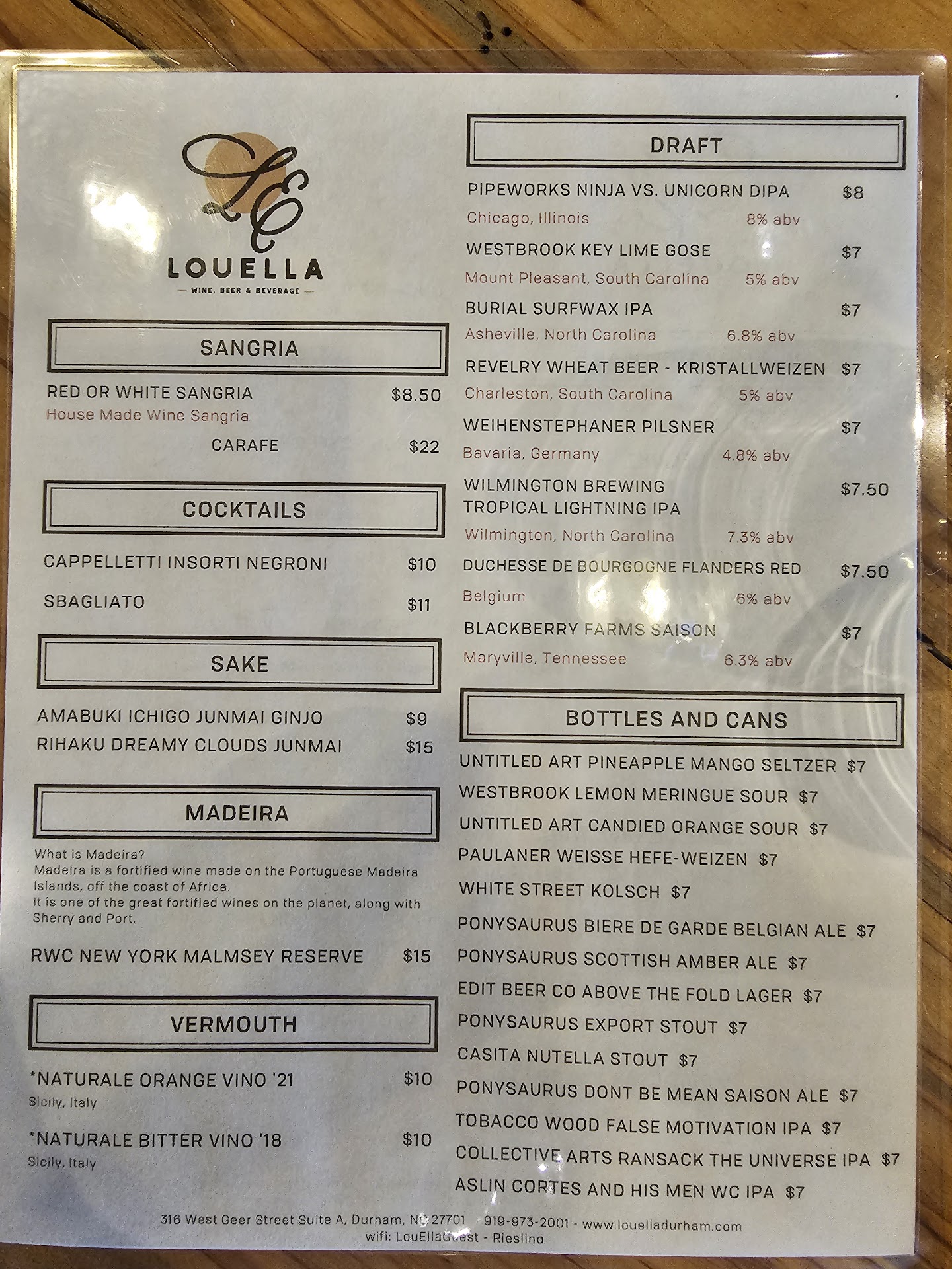 My two best friends, my 89 year old mother, and I were in Durham this past weekend to house and dog sit for one of my friend’s nieces and her partner. One of the ways they showed us their spirit of generosity was to leave their Aunt Tam a gift card to LouElla. What an experience! We tasted a little wine, visited and laughed with the owner, and enjoyed a light snack. Just when we thought it couldn’t get any better, we had white glove service from (forgive me if I have his name wrong), Sergio when he helped us choose our purchases . We had a fabulous time and came home with a variety of wines to try and to gift to others. All the while, we were learning a little from our guide. We cannot wait to come back to Durham, and revisit this sweet little wine shop, its knowledgeable staff, and of course, Aunt Tam’s family! Thanks, Emily and Ashley! Aunt Tam, Kay, and Gigi (Kim) loved it!, and Nana left feeling like a...