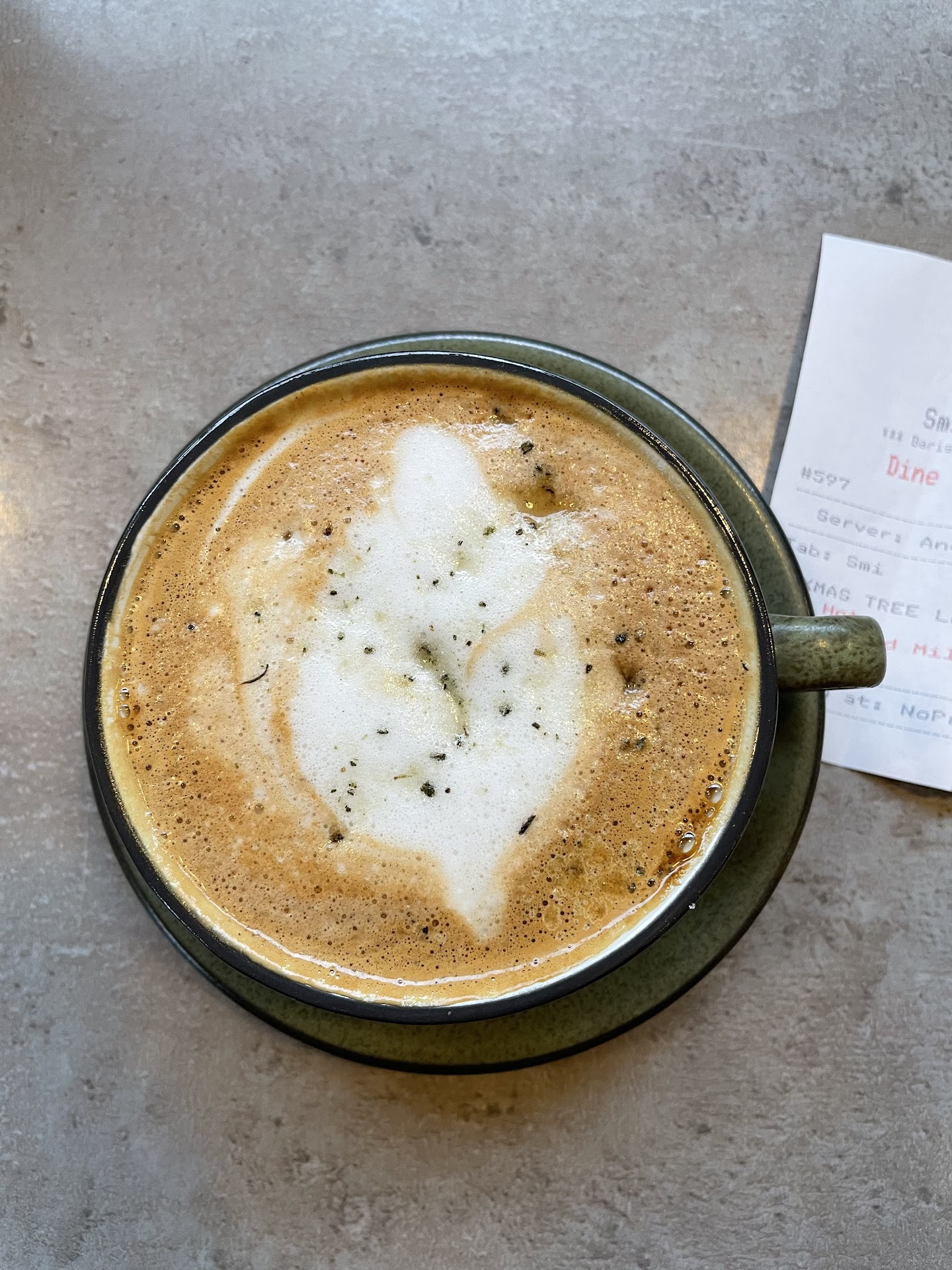 I am not a coffee fanatic so I just order the standard drip coffee and it's good. You have a choice of dark roast or light roast. They also offer pour overs of different kinds and special lattes and things. Based on how often other people order these I would say that they are probably pretty good. I have also had a chai latte here in the past and it was a bit too sweet for my tastes but well spiced and good.