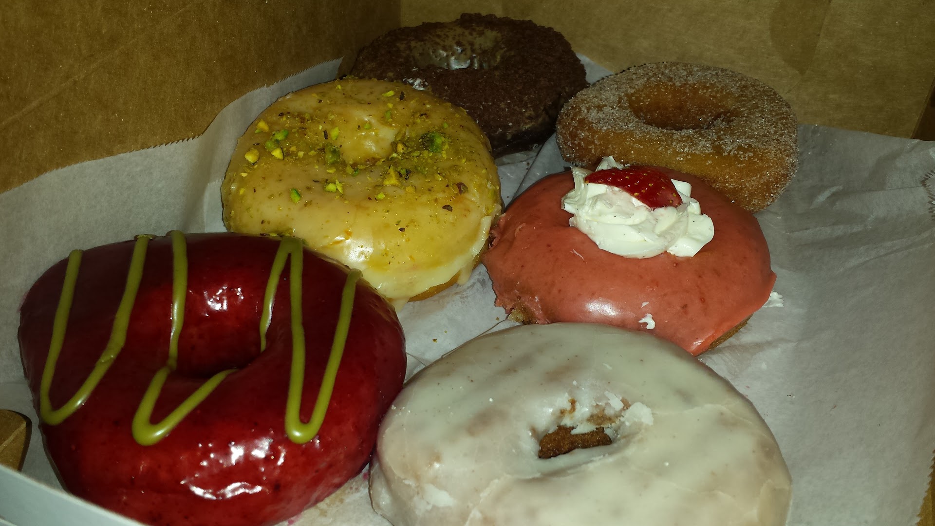 The donuts are incredible. They change the menu often, so the best place to get an update would be to look them up on their facebook where they post photos of the specials menu every day. They offer around 4 "yeast" soft fluffy donuts and 4 cake donuts with a denser consistency every day. I had the North Carolinian, a sweet potato and bourbon cake donut, and a dark chocolate and sea salt yeast donut on my last visit. The North Carolinian was warm and possibly one of the best cake donuts I have ever had. The chocolate/sea salt one was also very, very tasty but not as memorable.