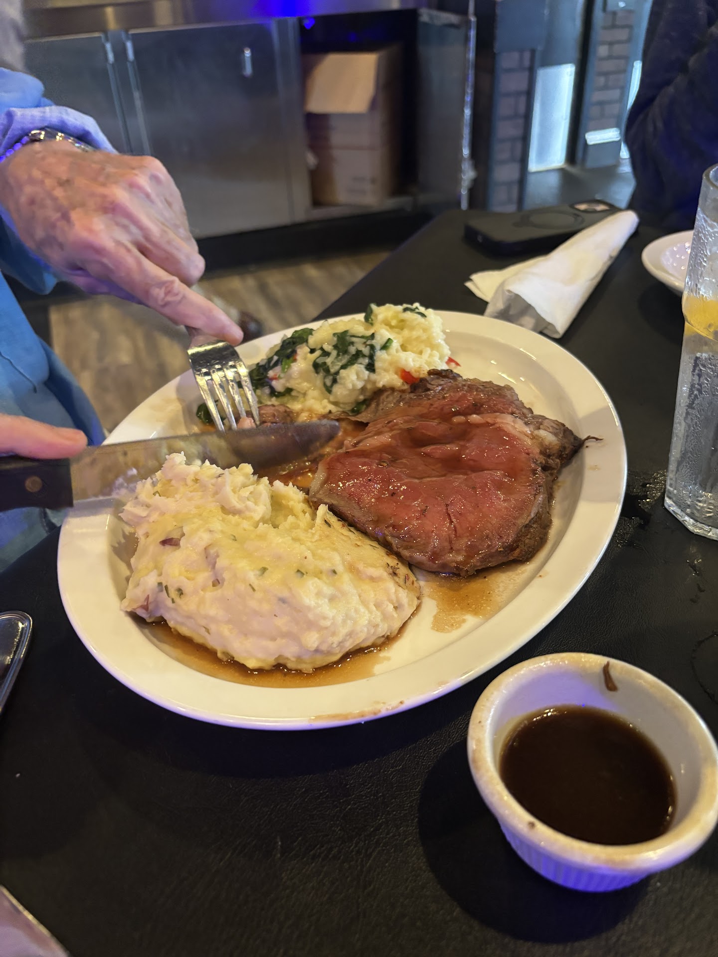 A year earlier: Really have to call it as it was. The quality of the food seemed very good, but if you don't deliver it to the table before it's cold, a five star meal becomes 3. Some would say that a room temperature steak and baked potato are unacceptable, but I'll cut them some slack due to low staff and being busy. Maybe they will get better, they did seem a bit overwhelmed and literally confused as to what went where. I also try to order an appetizer or something extra at each visit. We decided to give the crab dip a try. Again, I was not impressed by their showing. The flavor was more of a "crabless" dip. Still with all that said, it would only take a little bit of effort to get to 4 stars, and some extra push with effort and I could see them achieve five stars. It's all up to them. The atmosphere was nice and the desserts looked great, but I didn't give them a try. Prices are more in line with a $$...