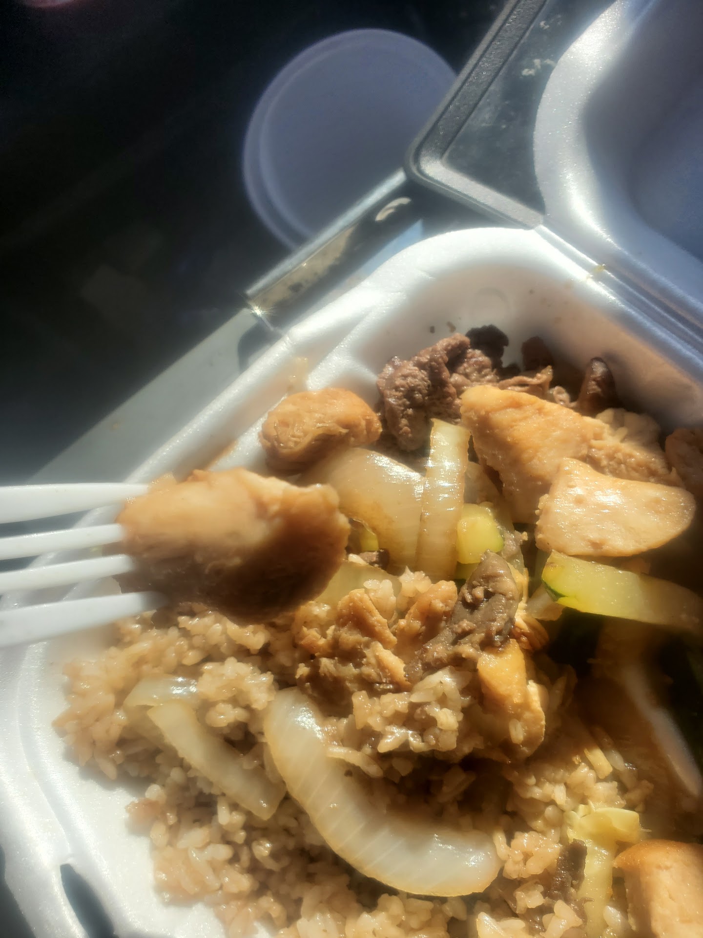 Read moreWorst excuse for hibachi I've ever seen. They don't even cook it to order, they cook large batches of meat at once and scoop It into a big bin to sit under a heatlamp and dry out. I've never seen any hibachi joints operate like this. Usually they cook it on the grill after you order, but instead I paid $15 for dry chewy flavorless leftovers. If I wanted leftovers I would have went to Golden corral 🤣 ..They don't even spray soy sauce on it while it's on the grill cooking like all other hibachi places do. No seasonings, nothing. Just plain ol steak and chicken, even at that it tasted like they have been re using and reheating the same meat leftover from the day before. Even the rice had this disticnt fowlness that sticks in your nose. Couldn't get it down without gagging. Horrible horrible horrible. Recommend avoiding this place at all costs. Threw the whole thing...