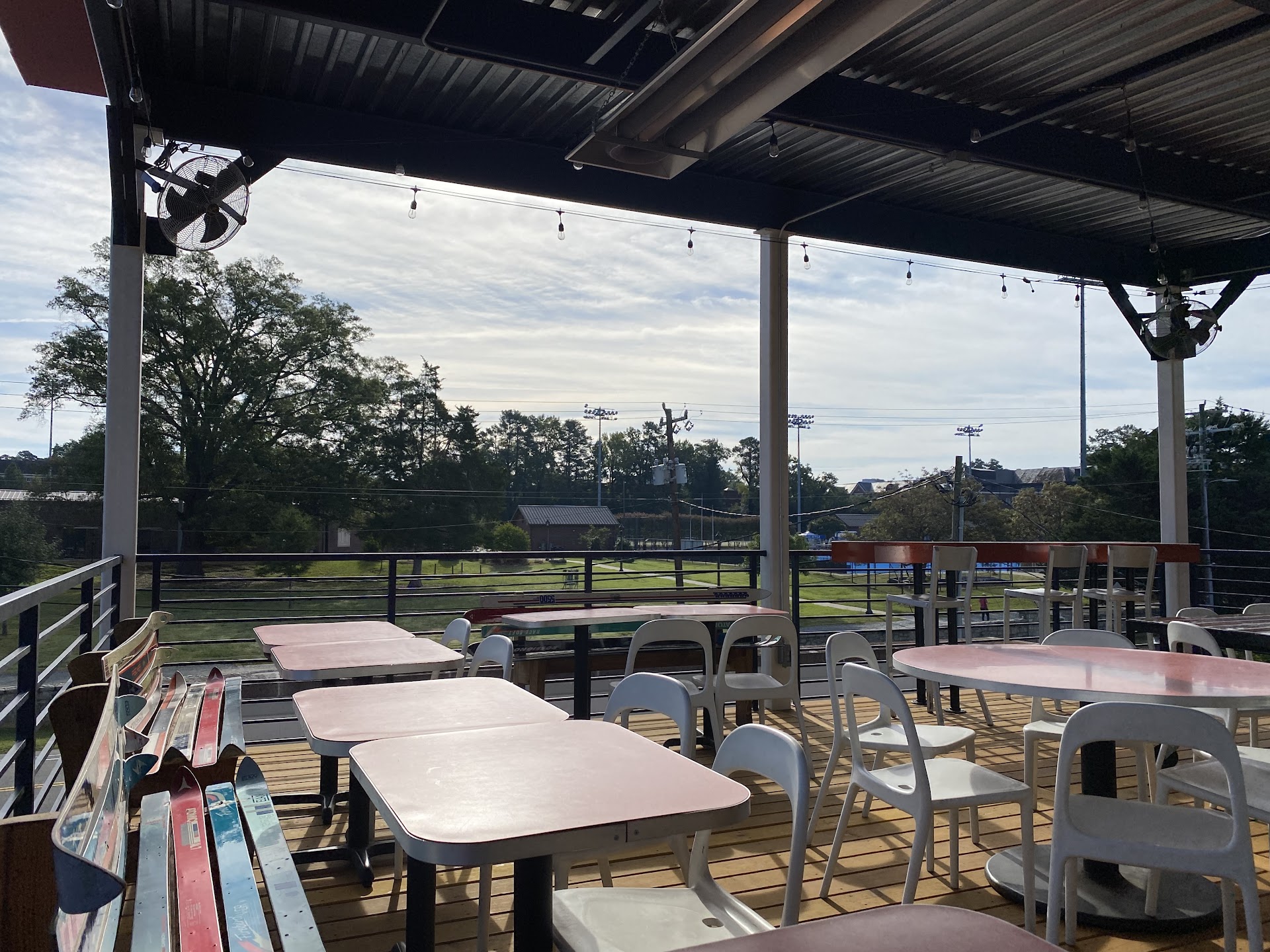 Suggest to download the app order online. It’s always busy. Rooftop seating go up the stairs thru the back of the building. Located by Duke east campus softball fields.
