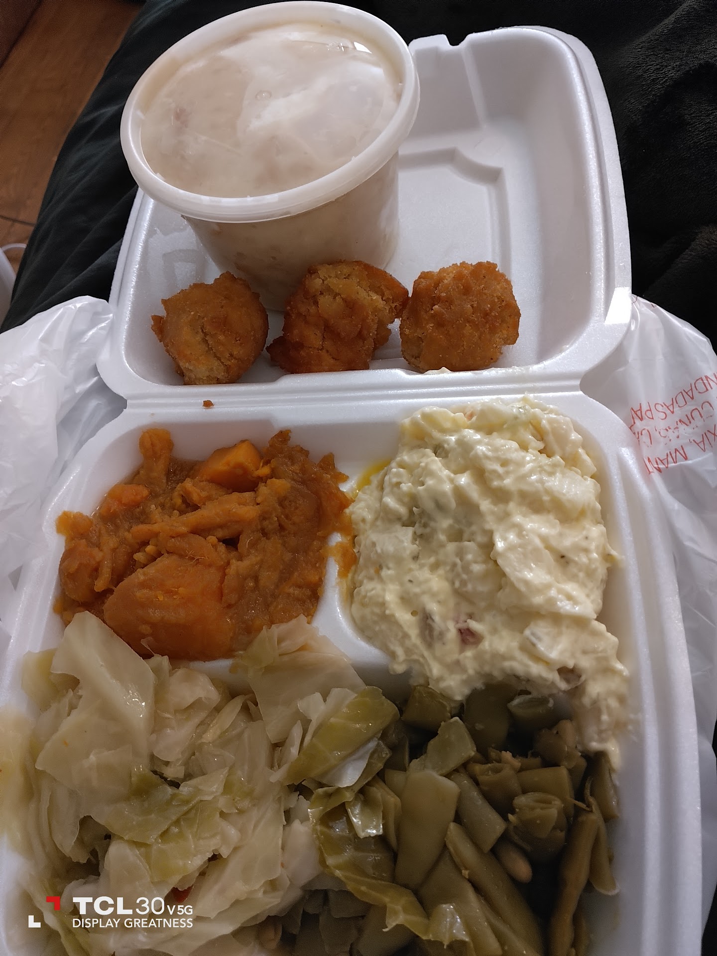 Read moreFirst of all ever since they got a new staff, thatâs predominantly Hispanic instead of black most of the Hispanic ladies are very rude and they donât take the time to go and check with the cook to see what will be served and when it will be served. This food is unseasoned, I typically get the fried chicken, dark meat with cabbage and mashed potatoes and gravy. However, the lady told me today that she couldnât tell me when the mashed potatoes would come out because they had a new cook like one thing had to do with the other. When I took the food home, I realize that the cabbage was unseasoned as well as the mac & cheese that I had to get because she refused to go back and check when the mashed potatoes would come out. I also had a hair in my food. When she got to my momâs plate, she tried to give my mom fried chicken that the skin have been burnt off of and when my mom told her thatâs not a piece that she wants it she started to get argumentative with my mom and say all of them were the same. This has been a restaurant that we typically go to however, we will not be going there anymore due to their bad customer service as well as the lack of...