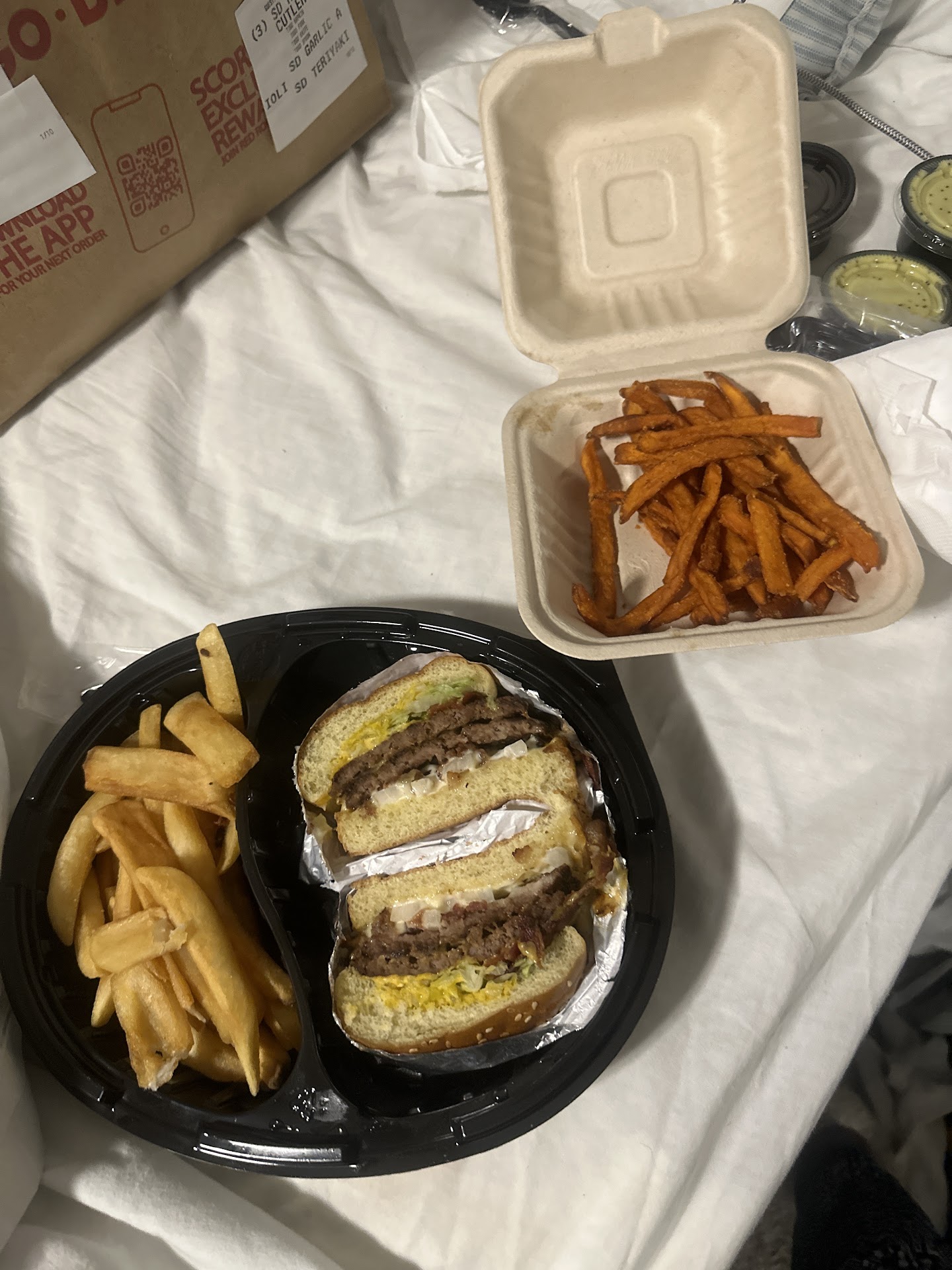 Read moreCleanliness - 4/5. Our table was sticky as were the condiment bottles on our table (salt, seasoning, ketchup, etc). Other than that, the bathroom looked like it was lacking attention since one of the two soap dispensers available were broken and empty. Service - 5/5. Waitress constantly checked on us to see if we needed refills on drinks or french fries and to ask if our food was okay. She was very attentive. Quality - 3/5. Quality was 'okay'. I say that because the beef patty on my "Mad Love" burger was almost paper thin. I guess the cost of beef is cut with a greater introduction of toppings like the gross amount of lettuce and onions that came on my sandwich. Might as well have ordered a veggie burger because I didn't taste the beef patty at all. Price - 3/5. I can't justify an extra $1.49 for the bottomless Garlic Herb steak fries only because they come out with garlic powder, 1 - 2 grated parmesan flakes and a light dusting of dried out "green stuff" they called herbs. They taste bland. Better off saving the $1.50 and just sprinkling the free seasoning salt already stationed on the tables, onto the plain fries. My "Mad Love" burger, with water, garlic fries and a fried egg ontop brought my total to $18. Way too much for an...