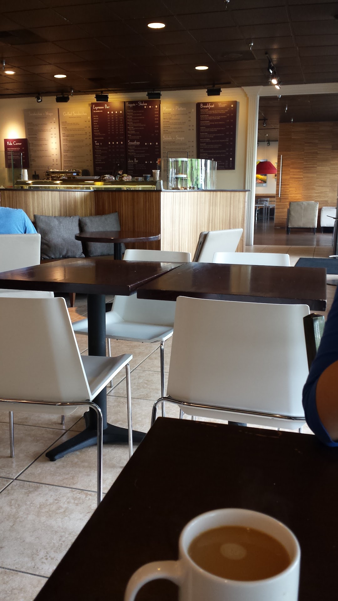 The decor was great. Saved you a star or two. Casual, clean, with a ton of cafe style plugs for chargers so you can sit and work all day. Food was served using the "take a number and display it" system. Great art on the walls, for sale. Very great. Very fluid and gestural.