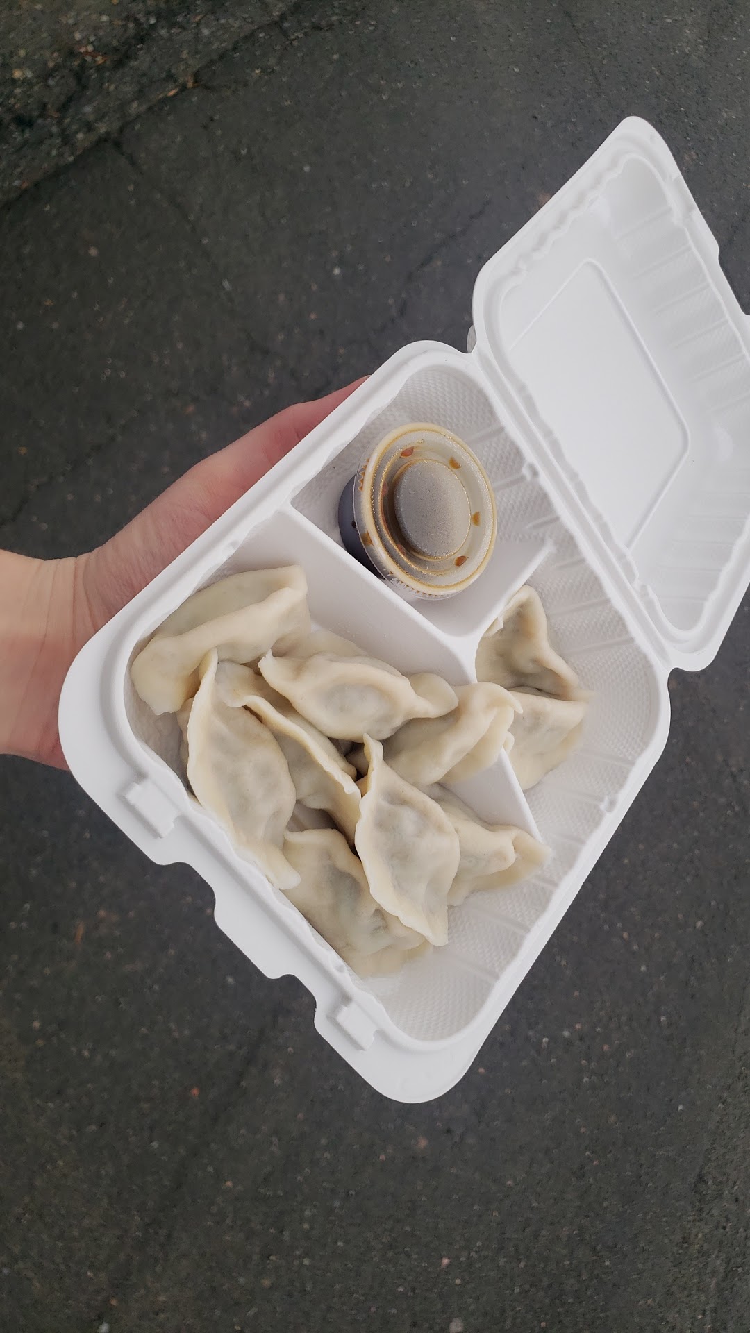 The food: I wanted to like it but I just did not. The dumplings (pork/chive) were mediocre at best. Very little filling to dough ratio, they were extremely fragile, and the filling had almost no flavor somehow. It needed salt/spices, and it was pretty dry. The sauce was equally lackluster and had almost no taste? Unclear how dipping sauce can be under salted lol. I hoped that dipping them in there would add some flavor but it just didn't unfortunately.