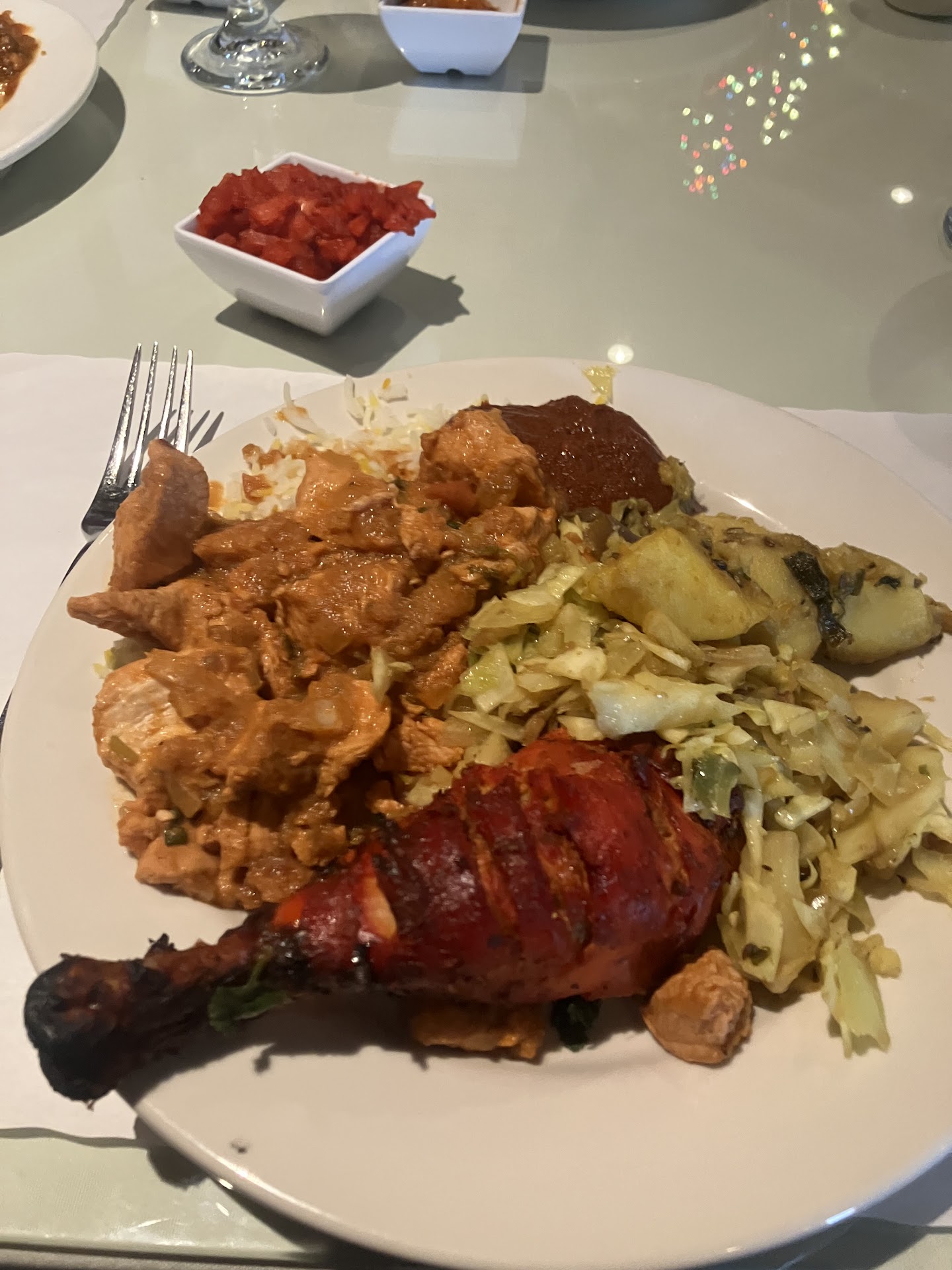 While it's always pleasant to eat one of the best Chicken Tikka Masala, most of our other favorites were missing: No Shrimp Malabar, no biryani, no masala paneer, no spiced cabbage, no goat dish, no good appetizer & no garlic naan. The Indian buffet experience was a major downgrade.