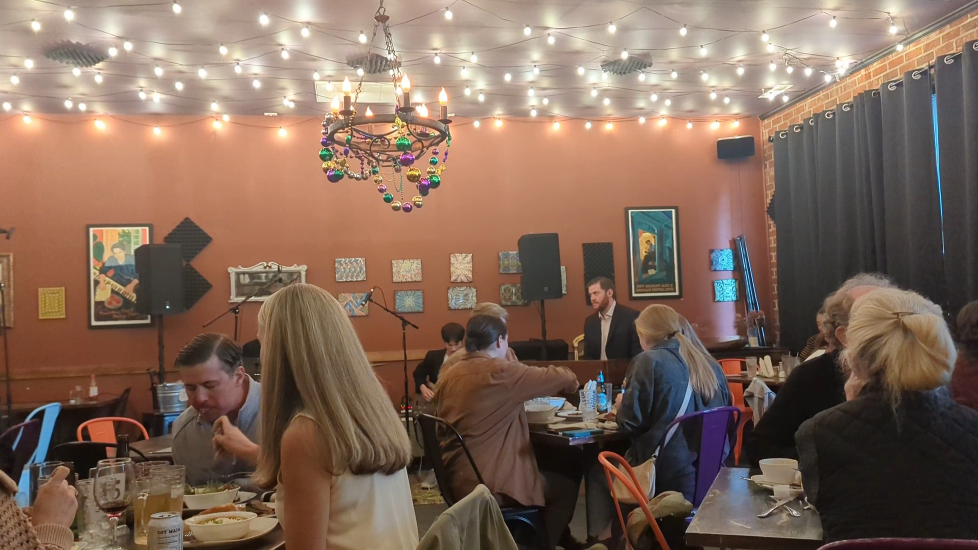 The decor is everything NOLA. From the beads, fleur de lis, paintings, photos, beer (Abita), potato chips, Edison lights, etc. They nailed it with NOLA vibes.